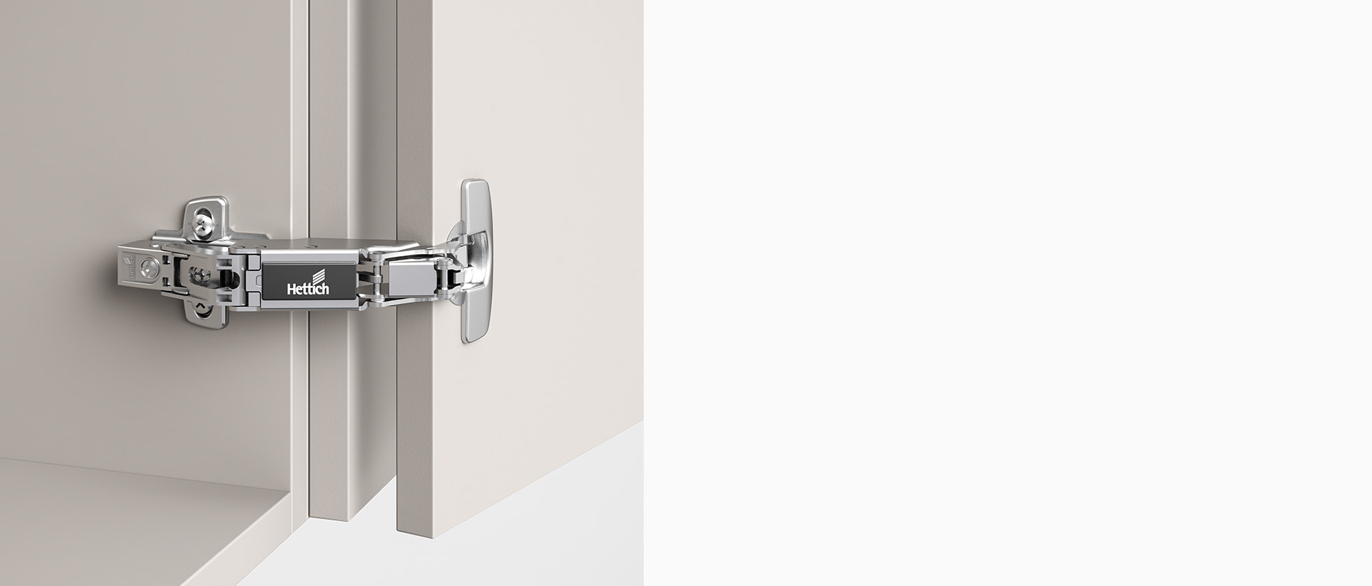 Исключение составляет заглушка на плече петли Sensys с широким углом открывания, где размещен только логотип «Hettich».