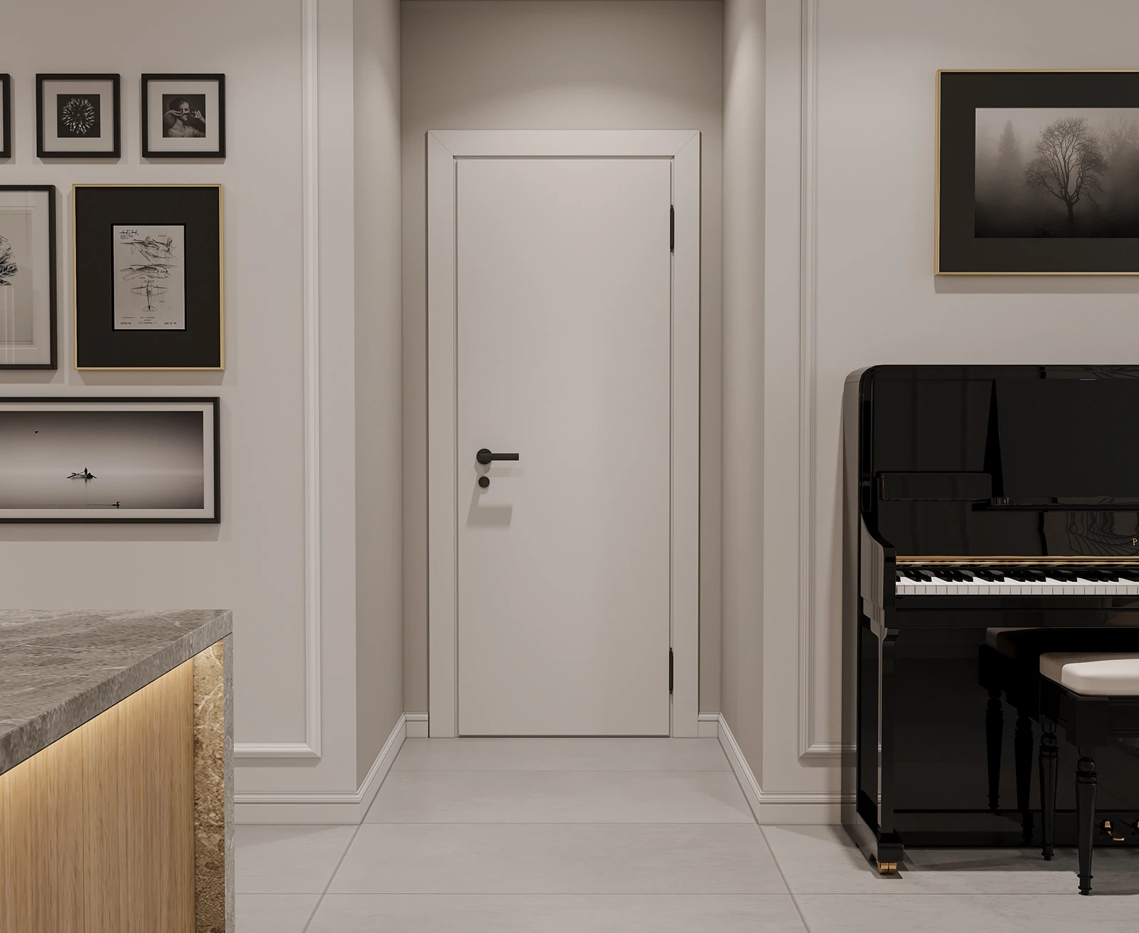 СТАНДАРТНАЯ КОМПЛЕКТАЦИЯ Дверное полотно, коробка, наличник на две стороны, петли, магнитный замок, уплотнитель, ригель (для двустворчатых конфигураций)