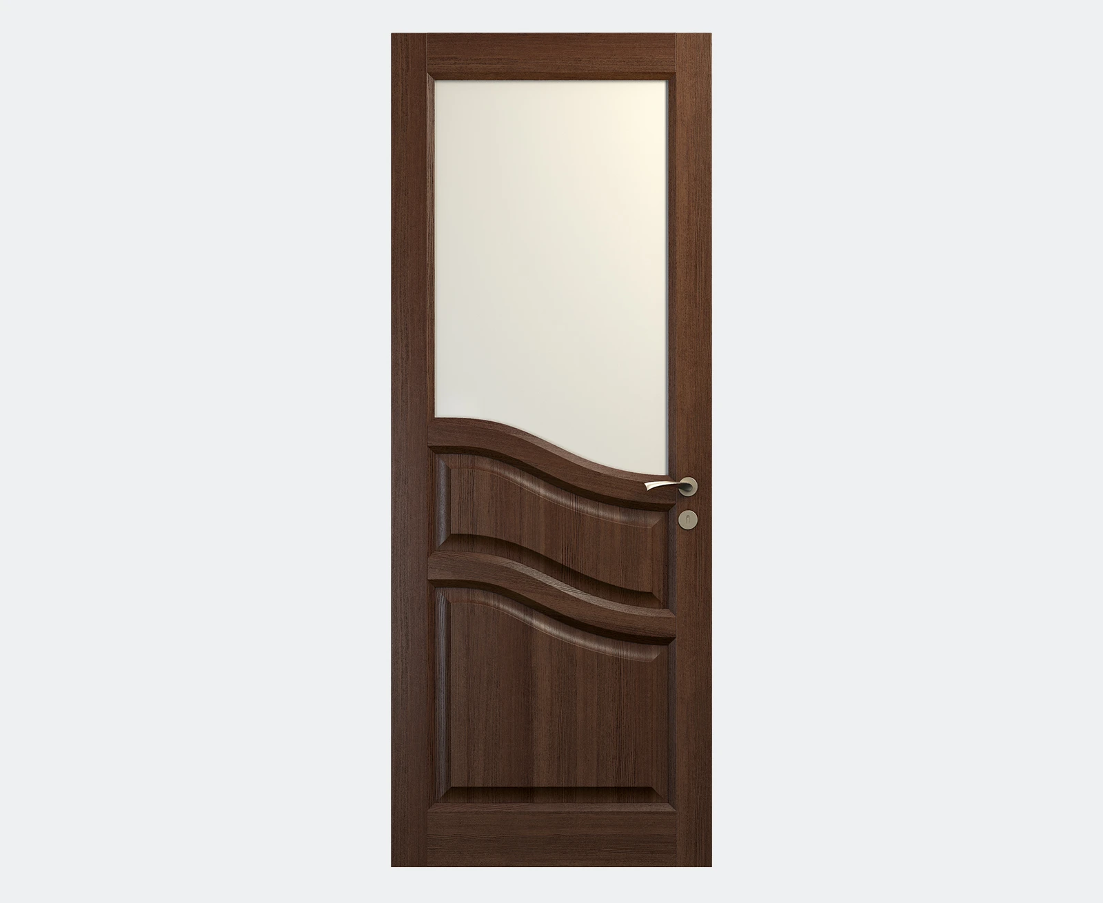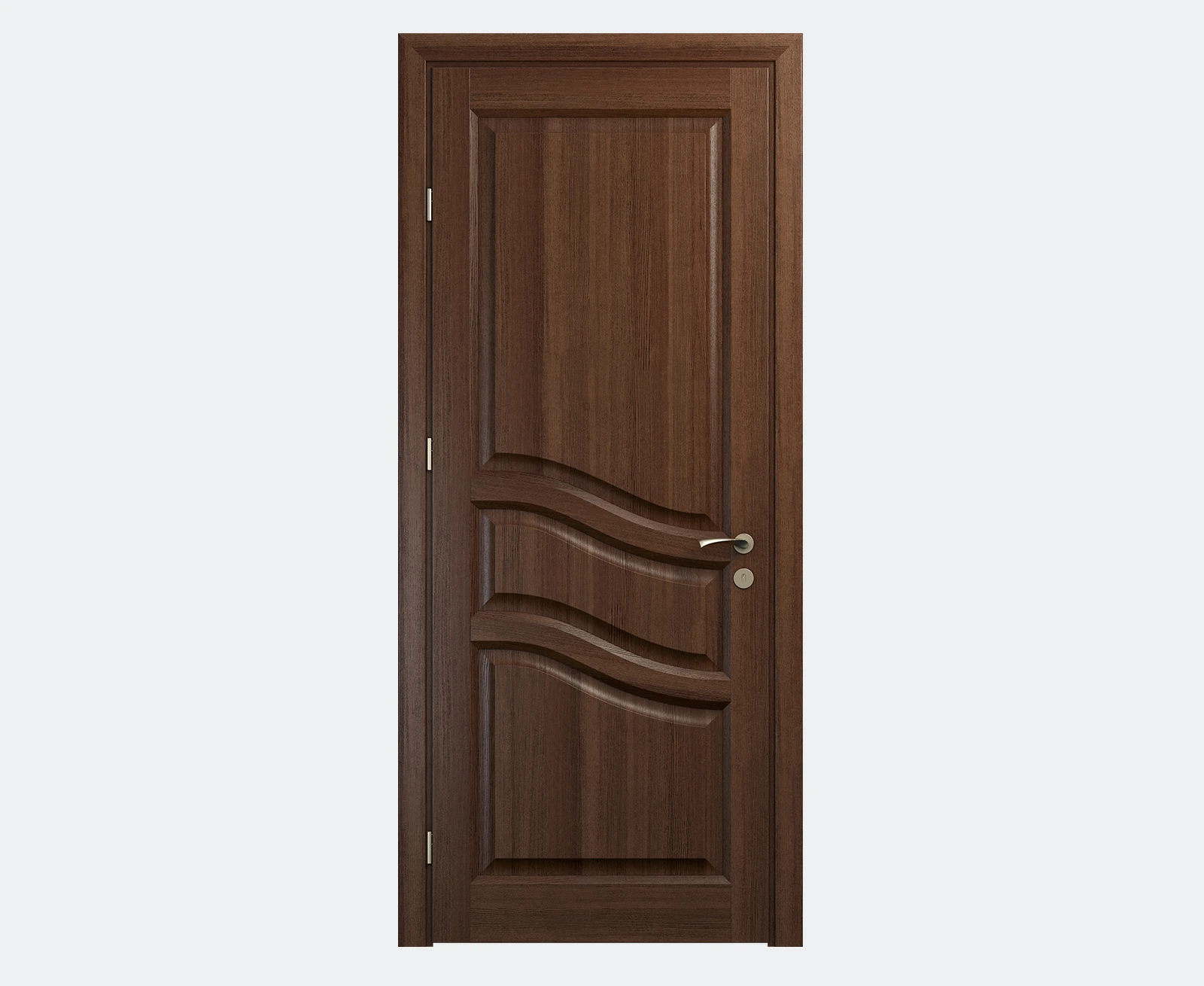 Дверное полотно, коробка, наличник на две стороны, петли, магнитный замок, уплотнитель, ригель (для двустворчатых конфигураций)