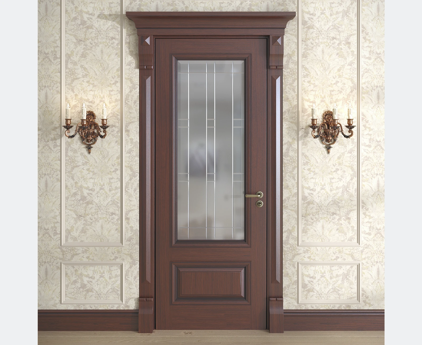 Дверное полотно, коробка, наличник на две стороны, петли, магнитный замок, уплотнитель, ригель (для двустворчатых конфигураций)