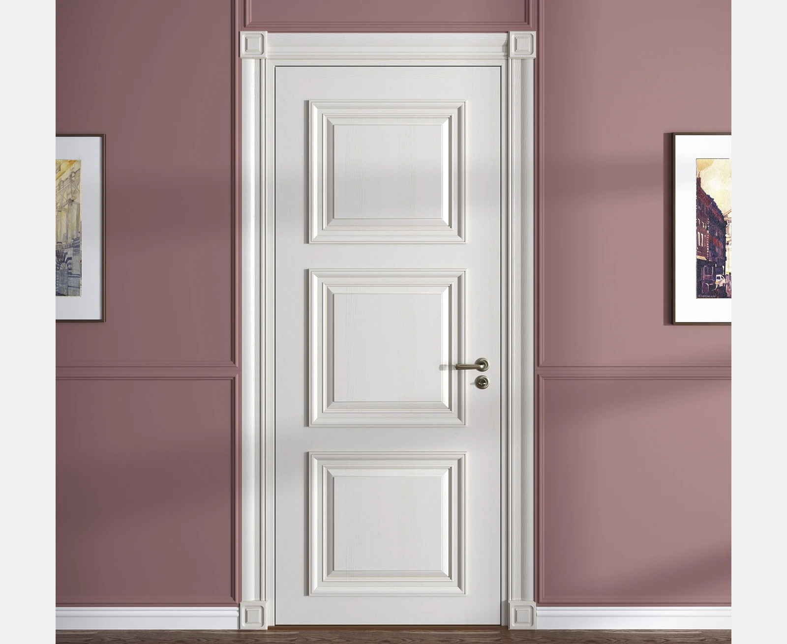 Дверное полотно, коробка, наличник на две стороны, петли, магнитный замок, уплотнитель, ригель (для двустворчатых конфигураций)
