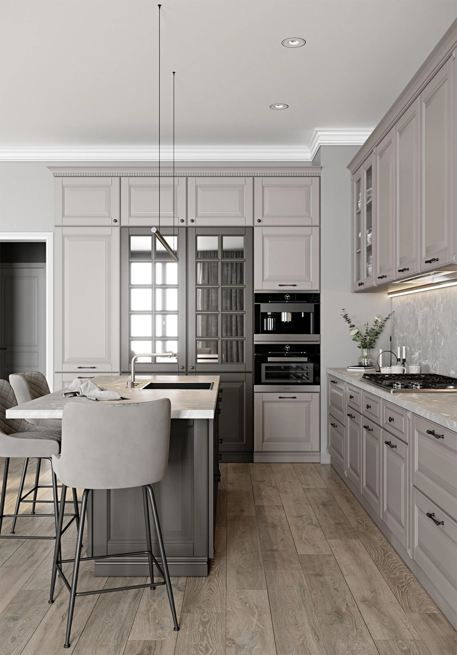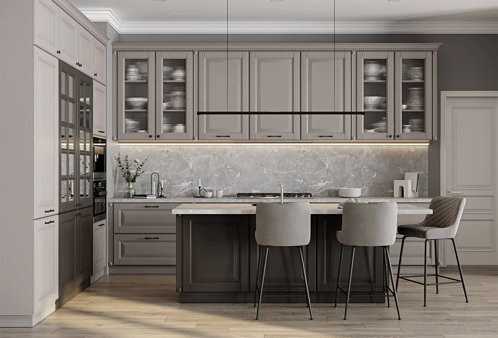 ФАСАДЫ T706 Натуральный дуб, цвет NCS S 1502-R (без патины) / NCS S 7502-R (без патины) СТОЛЕШНИЦА Пластик HPL, 38 мм