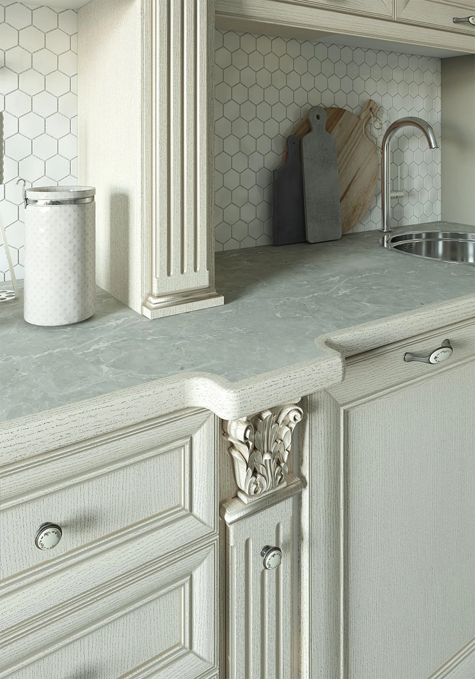 Пилястра #9, накладка декоративная НМ «Полочница» (713 × 196), декоративная шторка #4, опора нижняя декоративная ОНД-2-1(150 / 192), багет Б-3К прямой (вставка гладкая), панель декоративная БПД-7-2, панель декоративная БПД-7-4, плинтус мебельный ПМ-2 прямой
