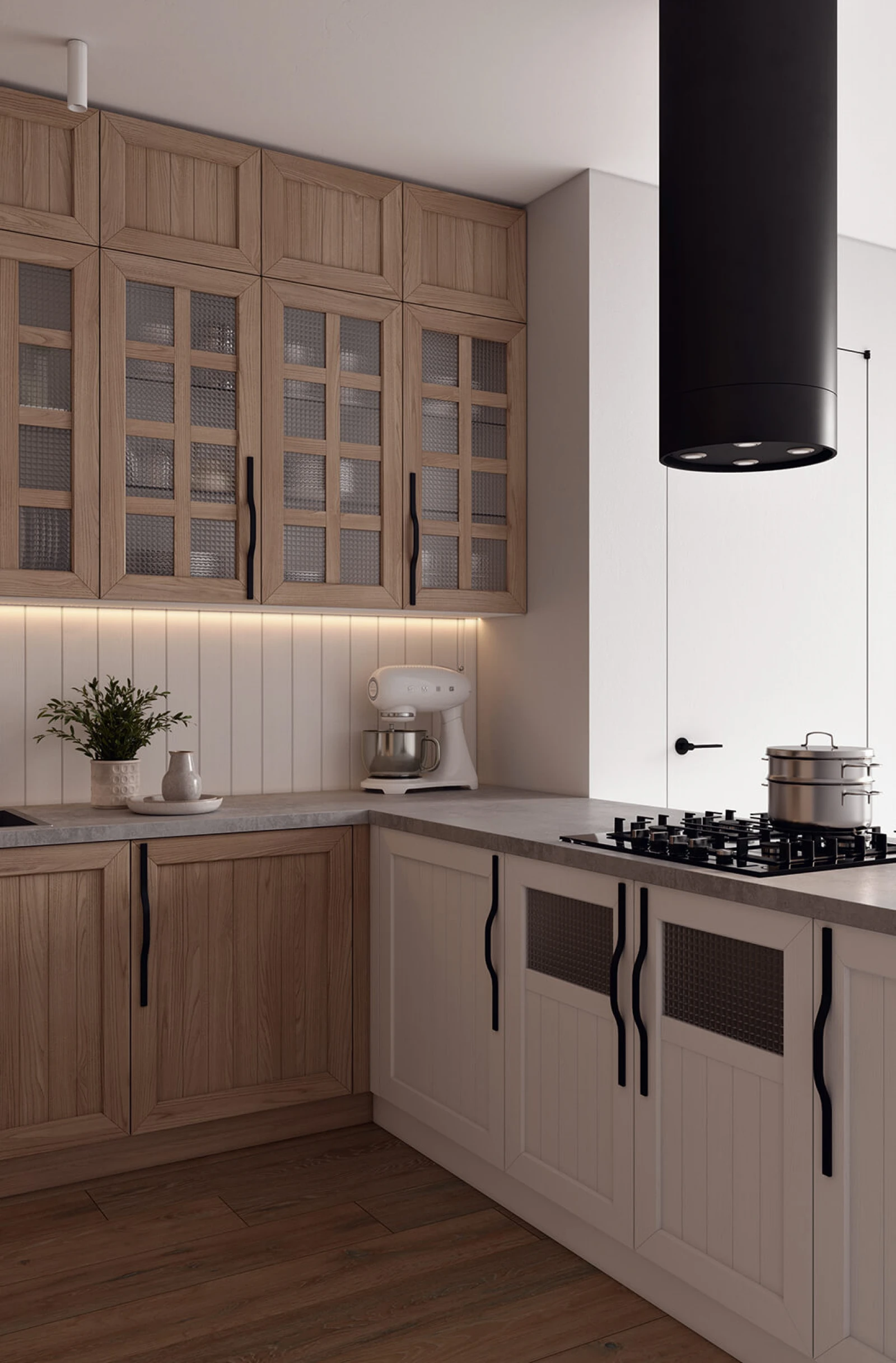 ФАСАДЫ Т736 Натуральный дуб, цвет NCS S 0500-N / #189 (воскобейц Белый) СТОЛЕШНИЦА Пластик HPL, 38 мм