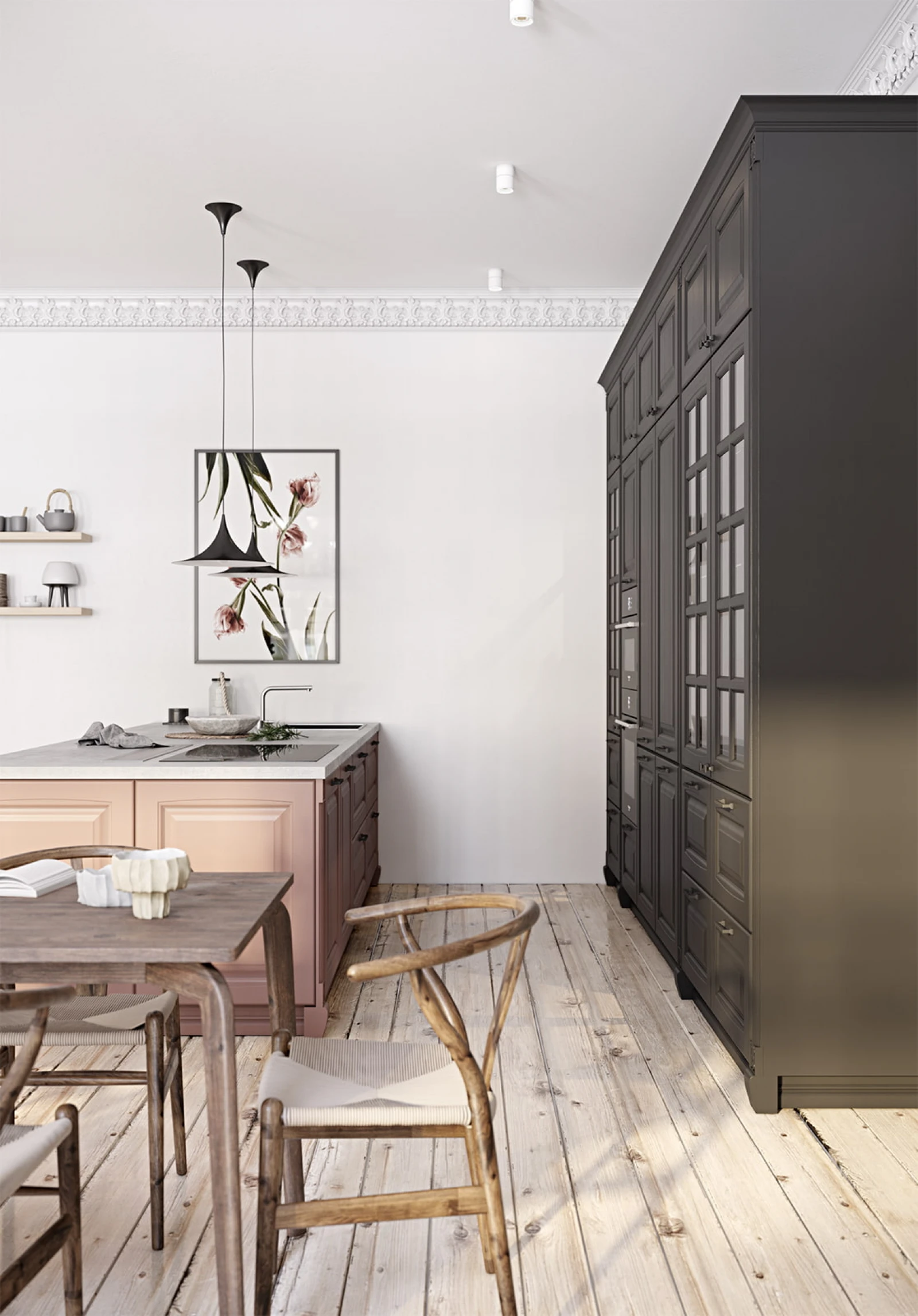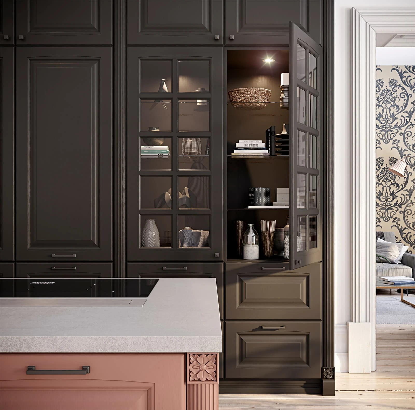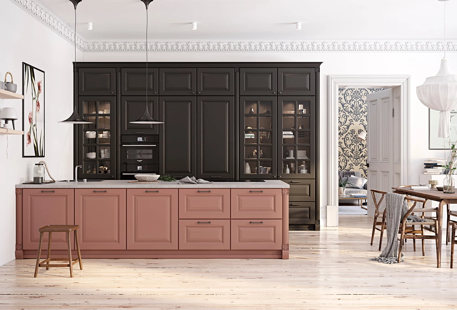 ФАСАДЫ Т711 Натуральный дуб, цвет NCS S 8000-N (без патины) / NCS S 3030-Y90R (без патины) СТОЛЕШНИЦА Пластик HPL, 38 мм