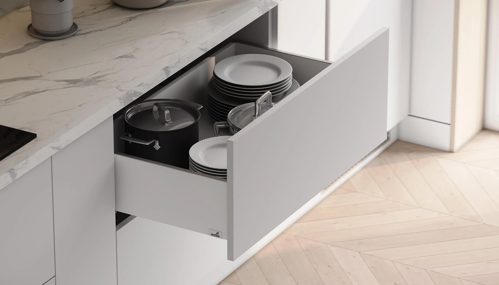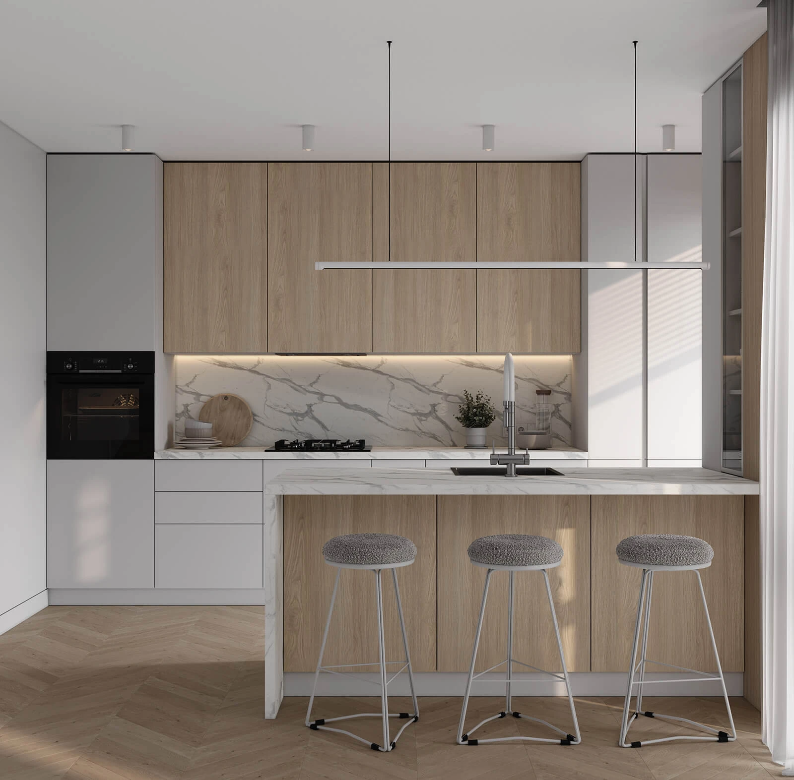 ФАСАДЫ Акрил Fenix NTM, цвет Светло-серый NTM (0725) / ЛДСП 18 мм СТОЛЕШНИЦА Пластик HPL, 38 мм