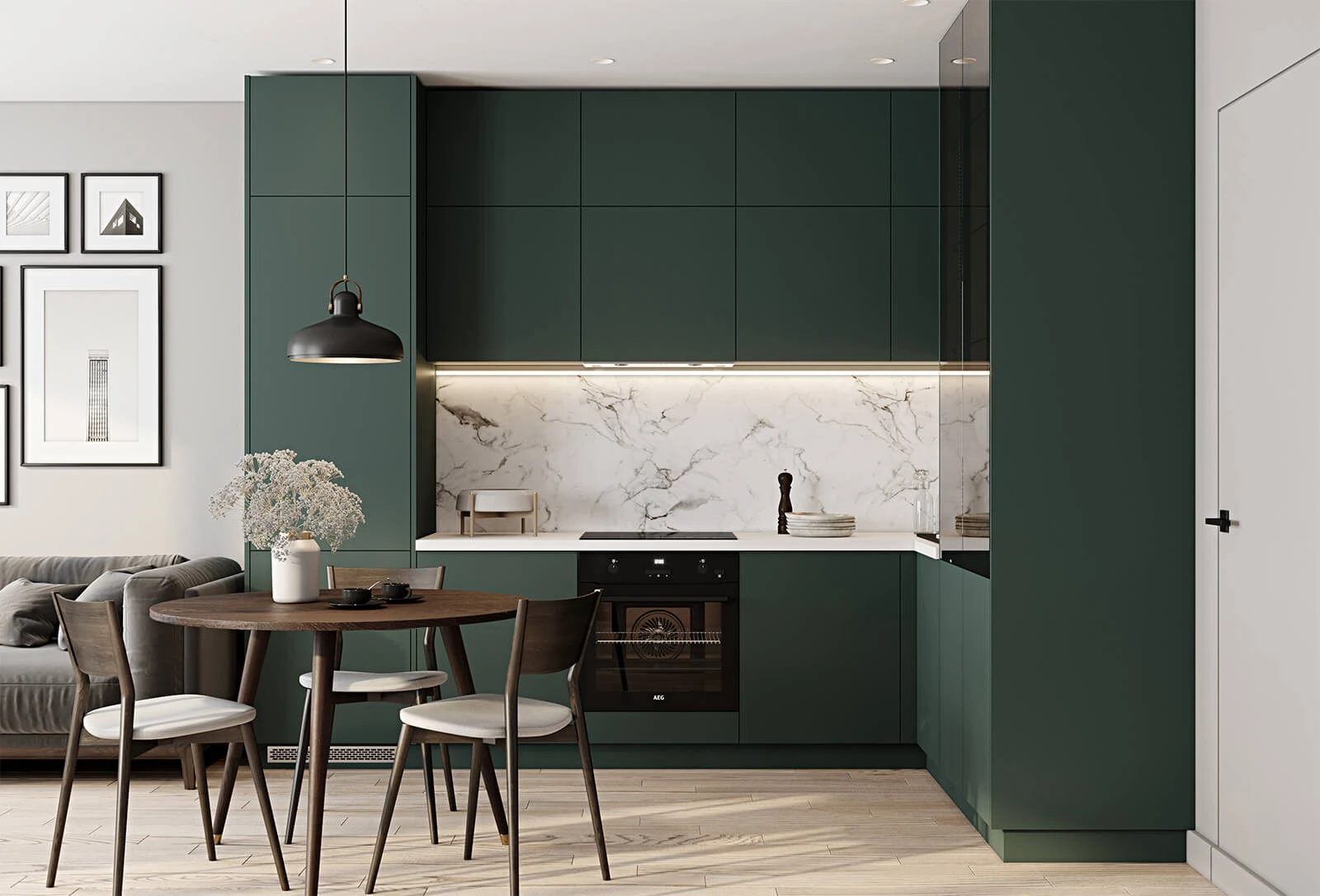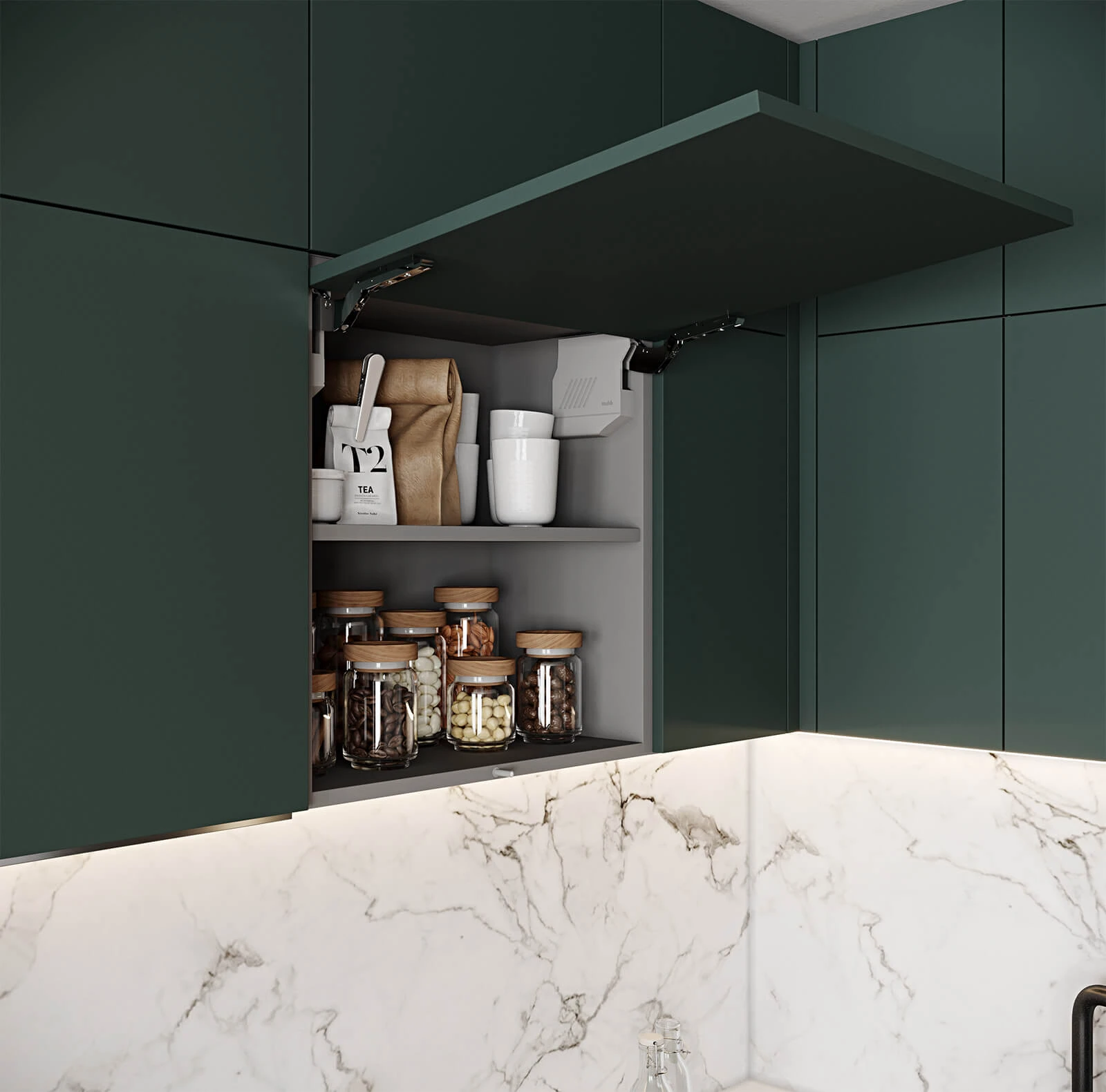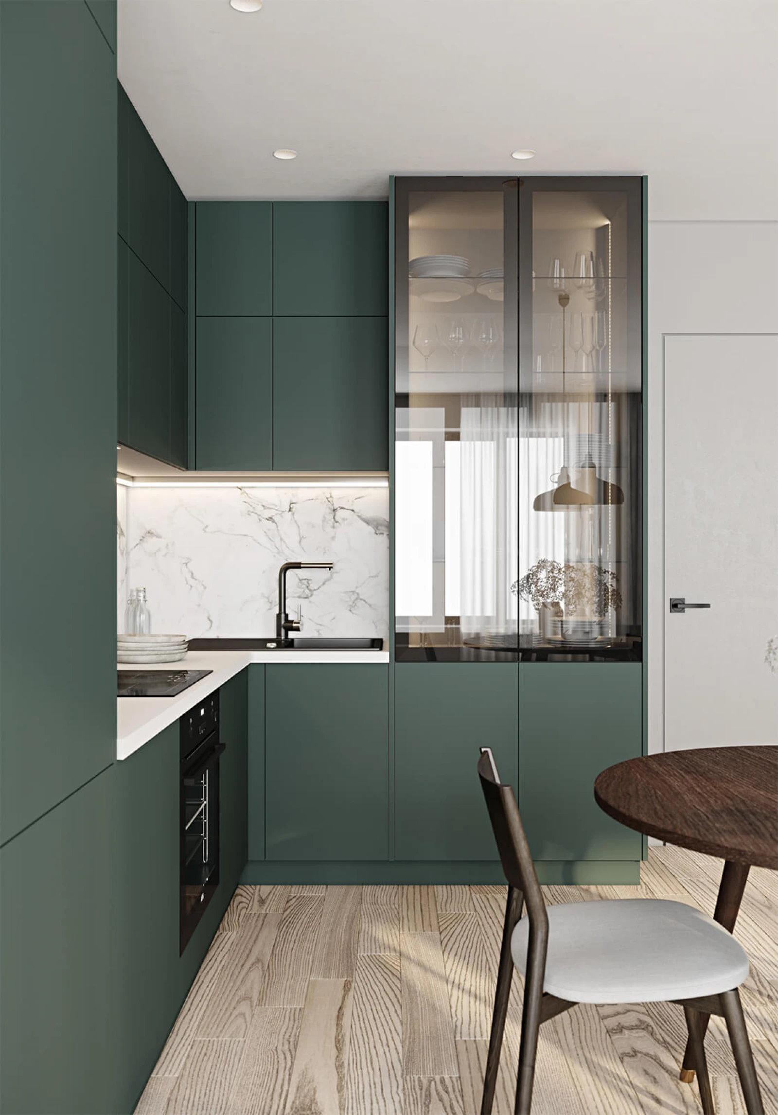 ФАСАДЫ Крашеная МДФ, цвет NCS S 7010-B90G Матовый СТОЛЕШНИЦА Пластик HPL, 38 мм