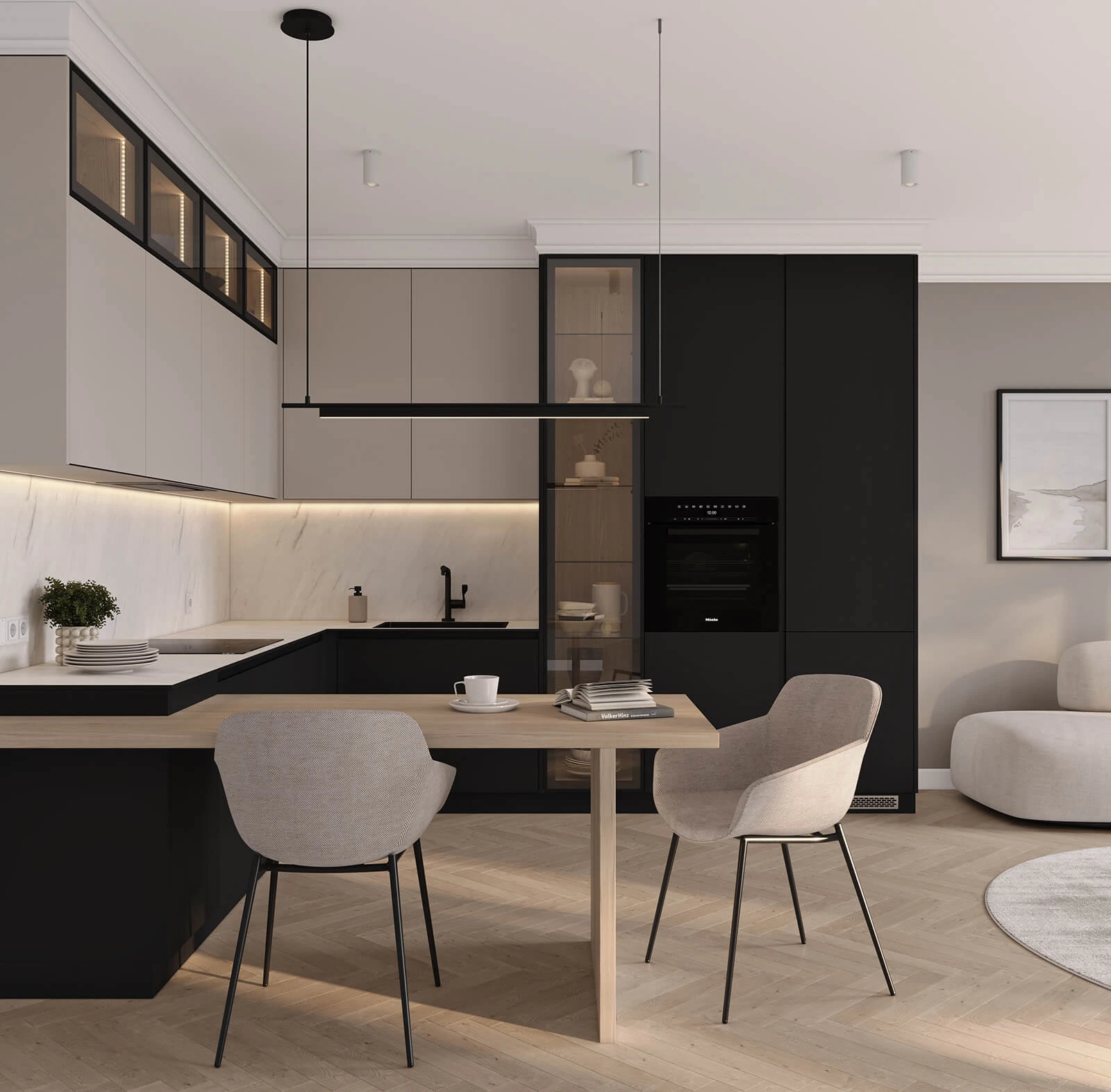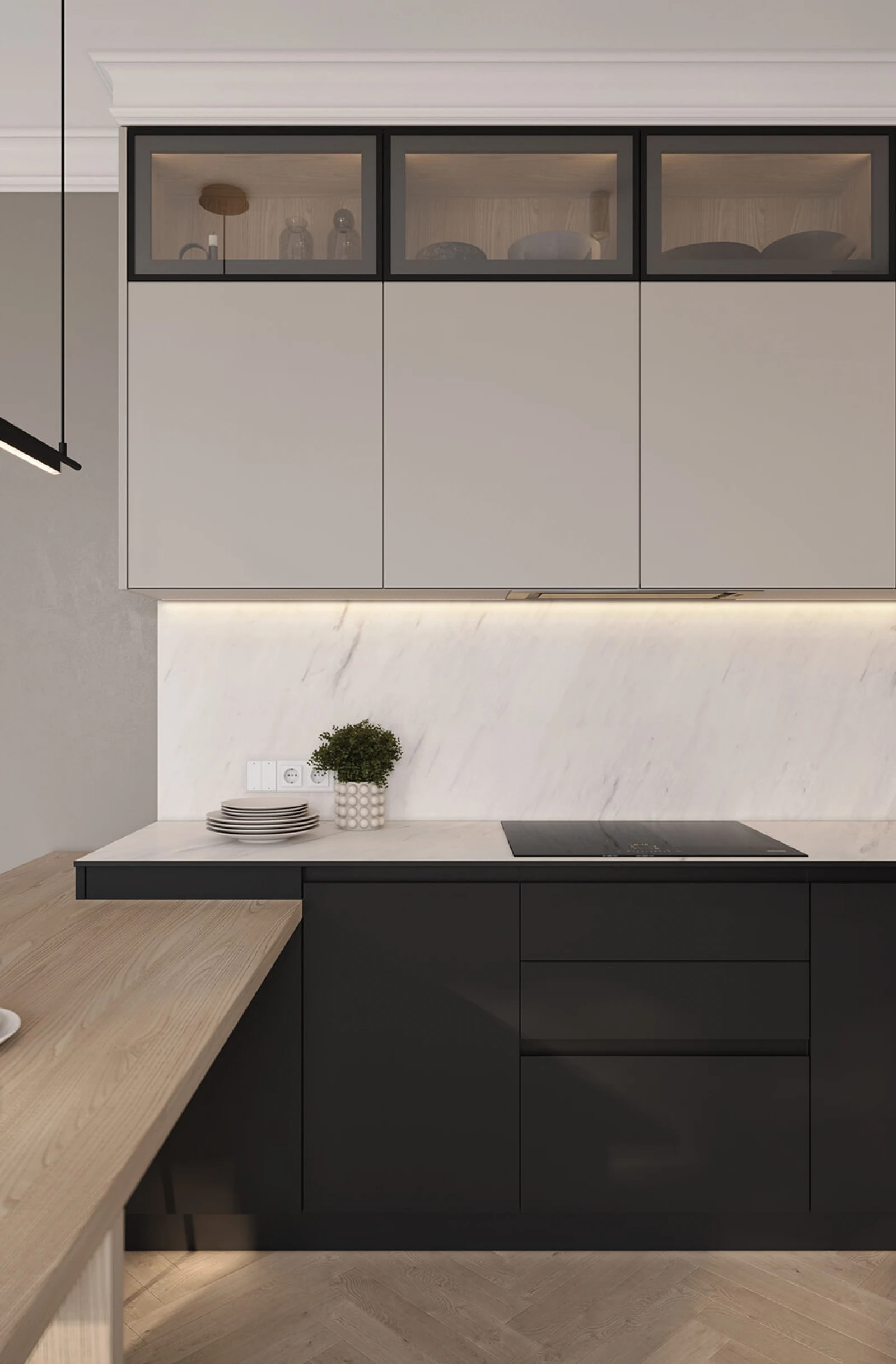 ФАСАДЫ МДФ/PET, цвет Ангора PET / Черный PET СТОЛЕШНИЦА Компакт-плита, 12 мм