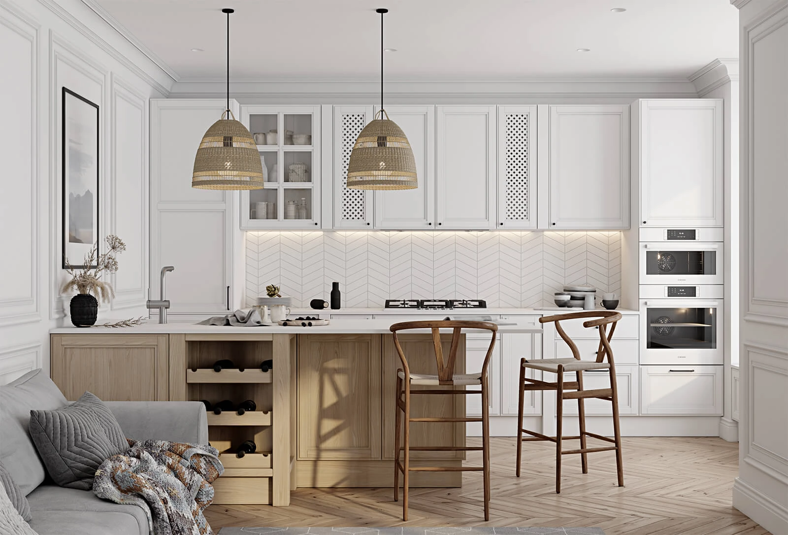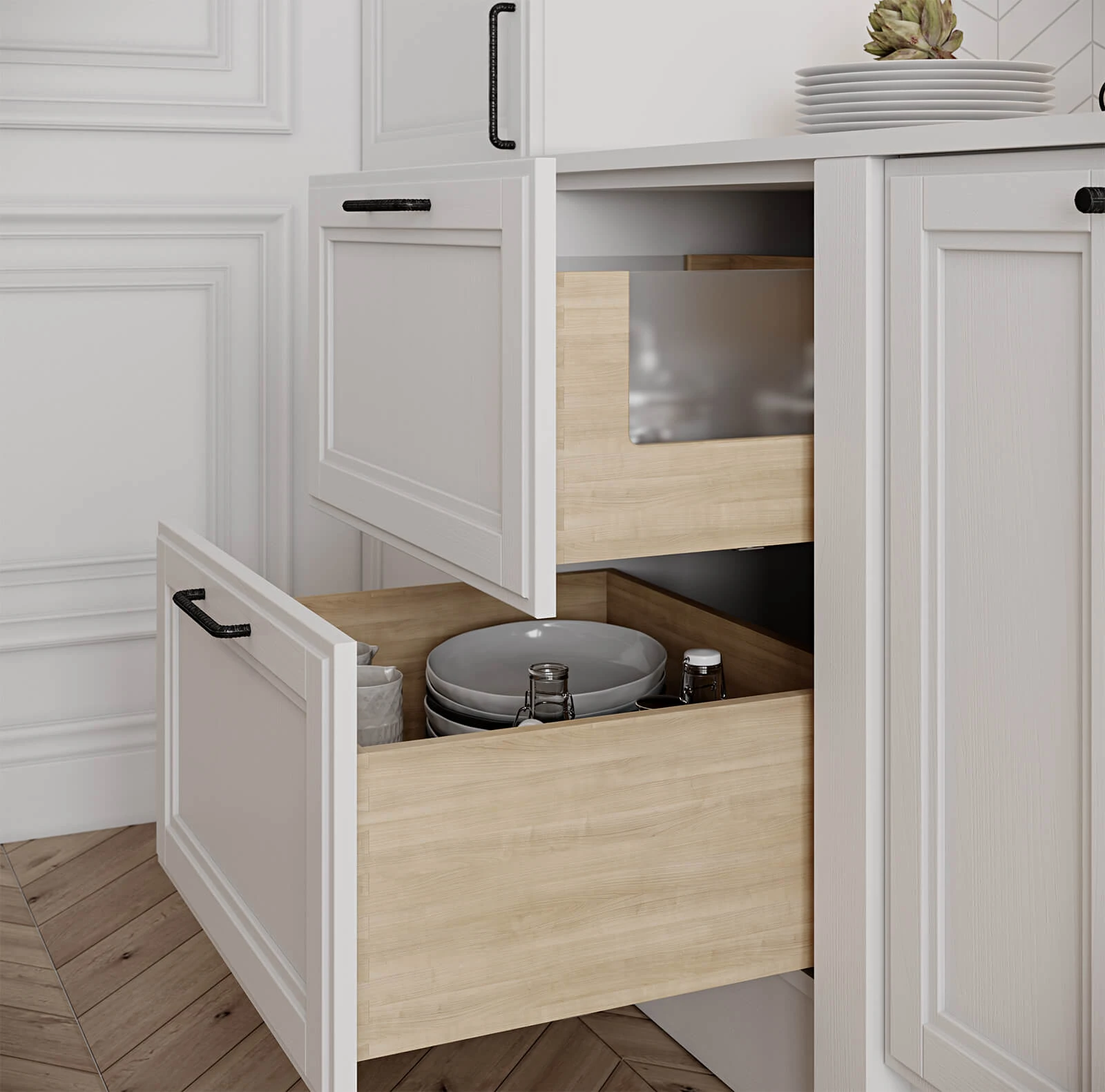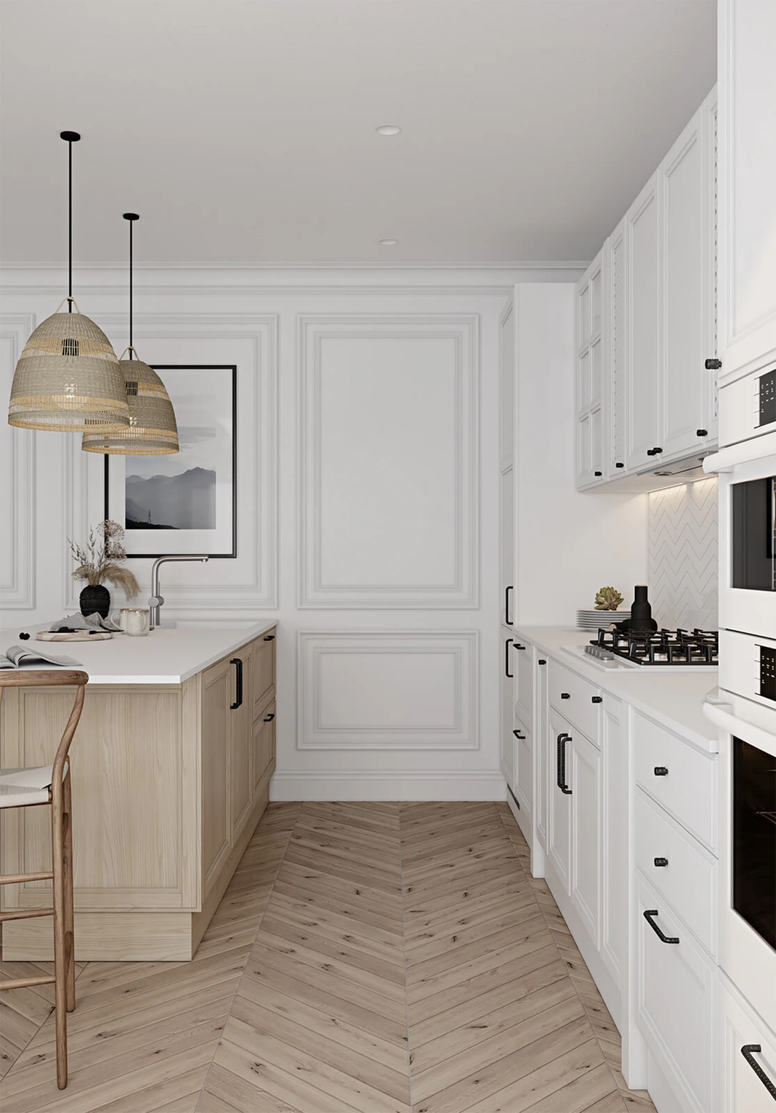 ФАСАДЫ Т709 Натуральный дуб, цвет 101 (без патины) / #183 (масловоск Бесцветный) СТОЛЕШНИЦА Акрил Fenix NTM, 20 мм, цвет Белый NTM (0032)