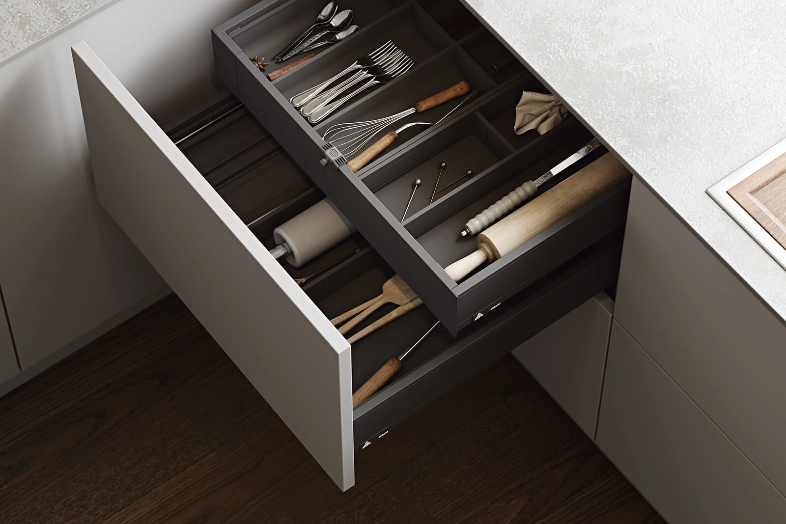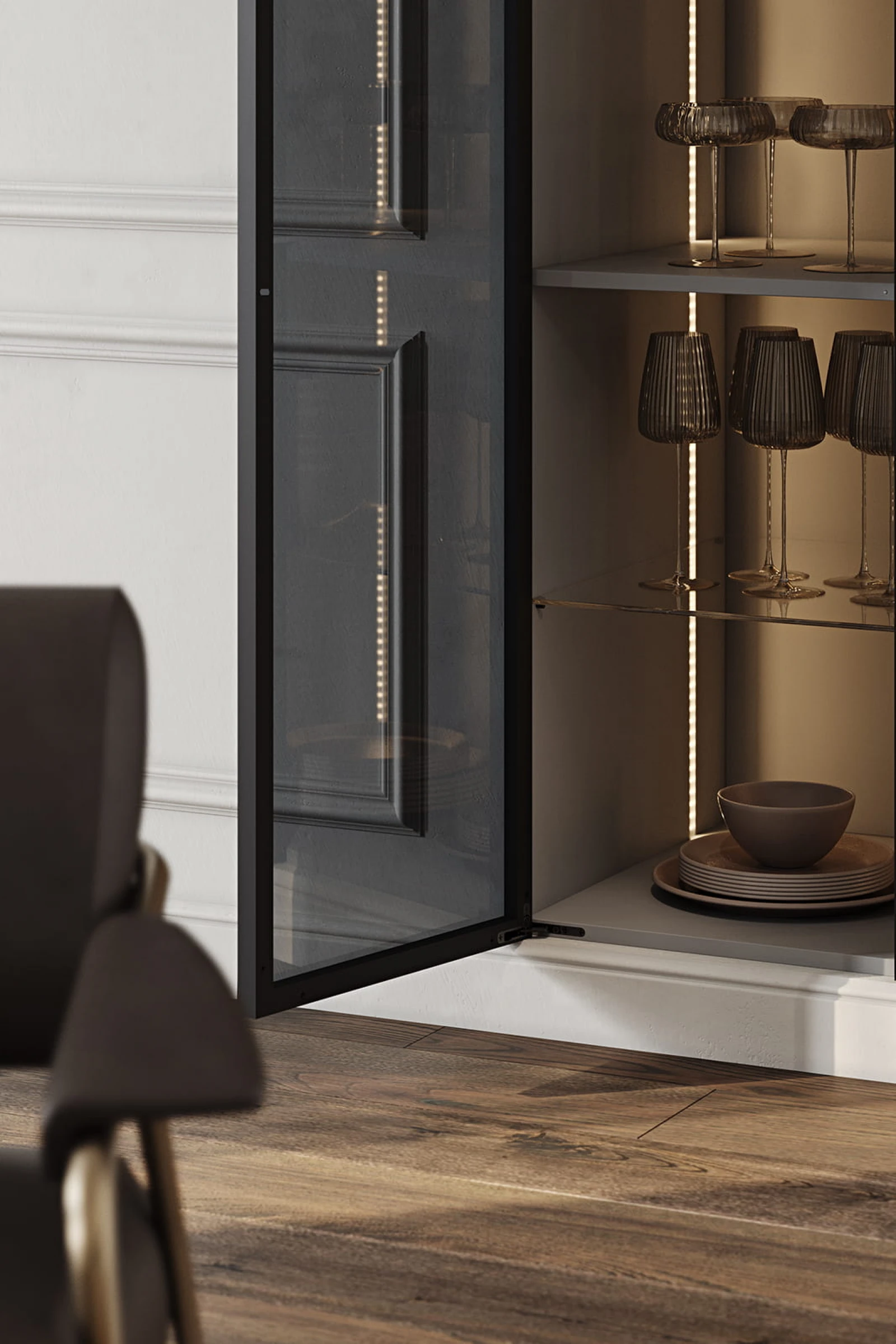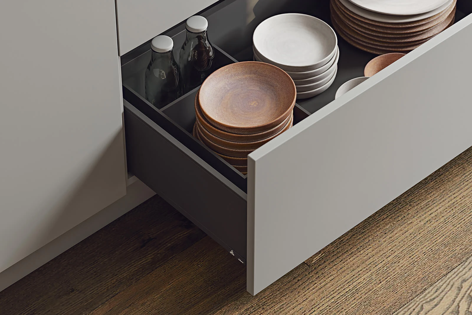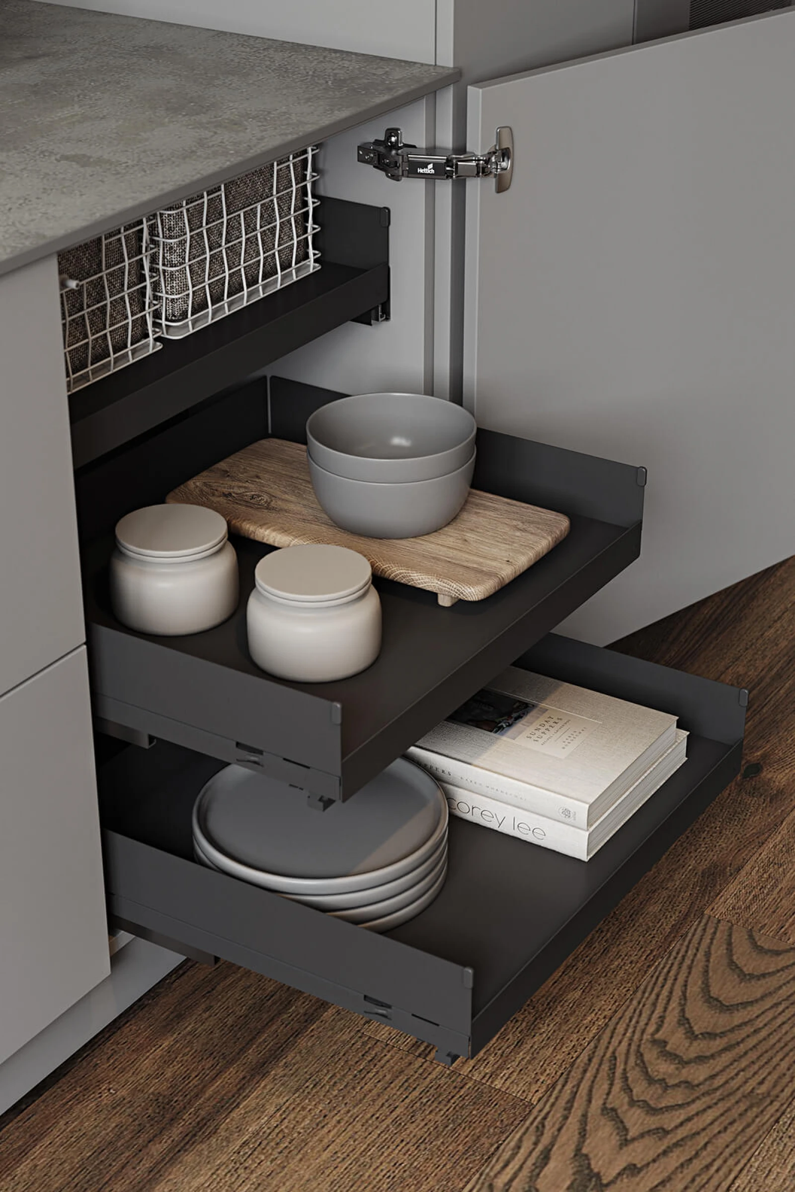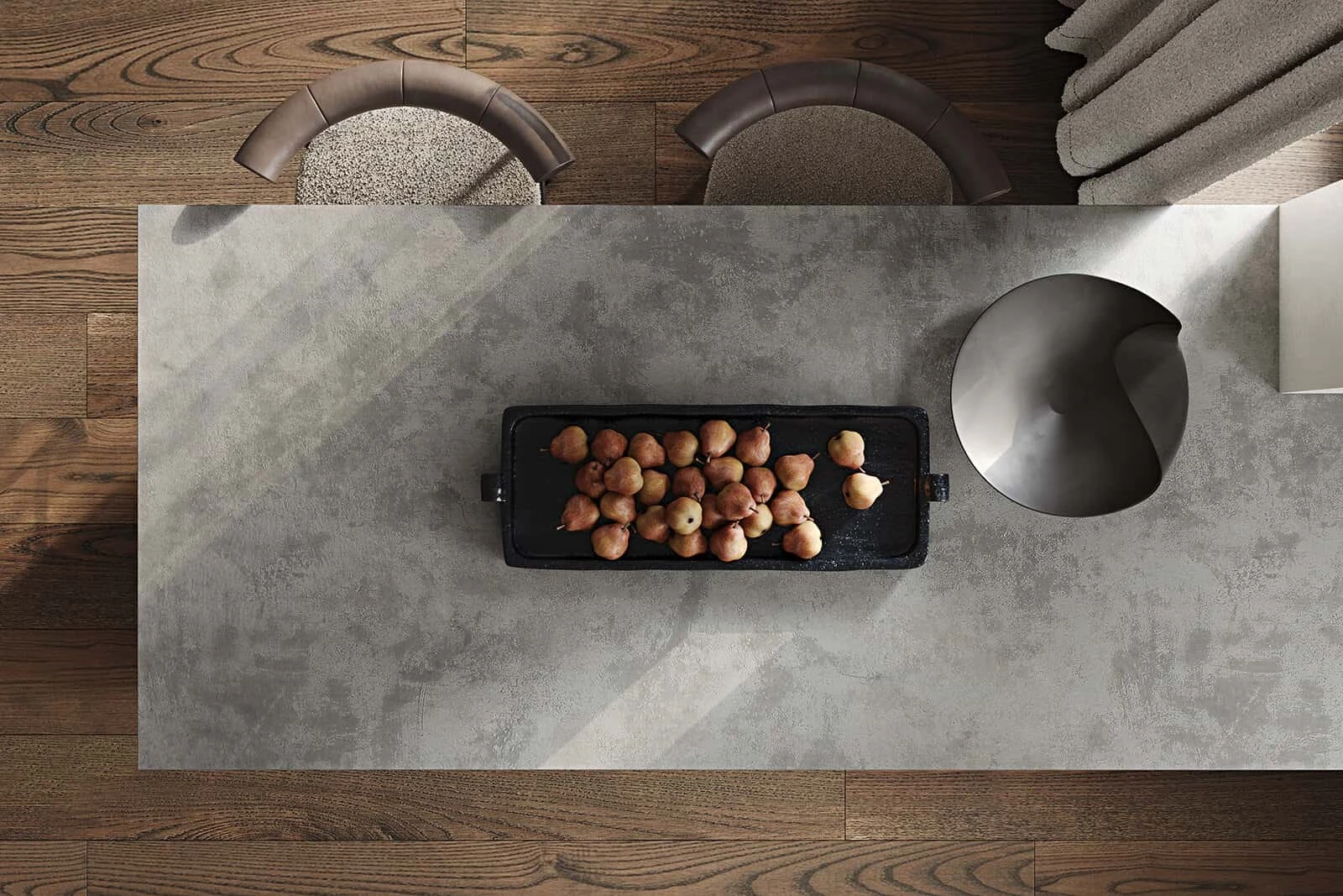 ФАСАДЫ Флавио (крашеная МДФ), цвет NCS S 0500-N Матовый / акрил FENIX NTM, цвет Серый NTM (0752) СТОЛЕШНИЦА Компакт-плита, 12 мм, декор Цинк Нирвана