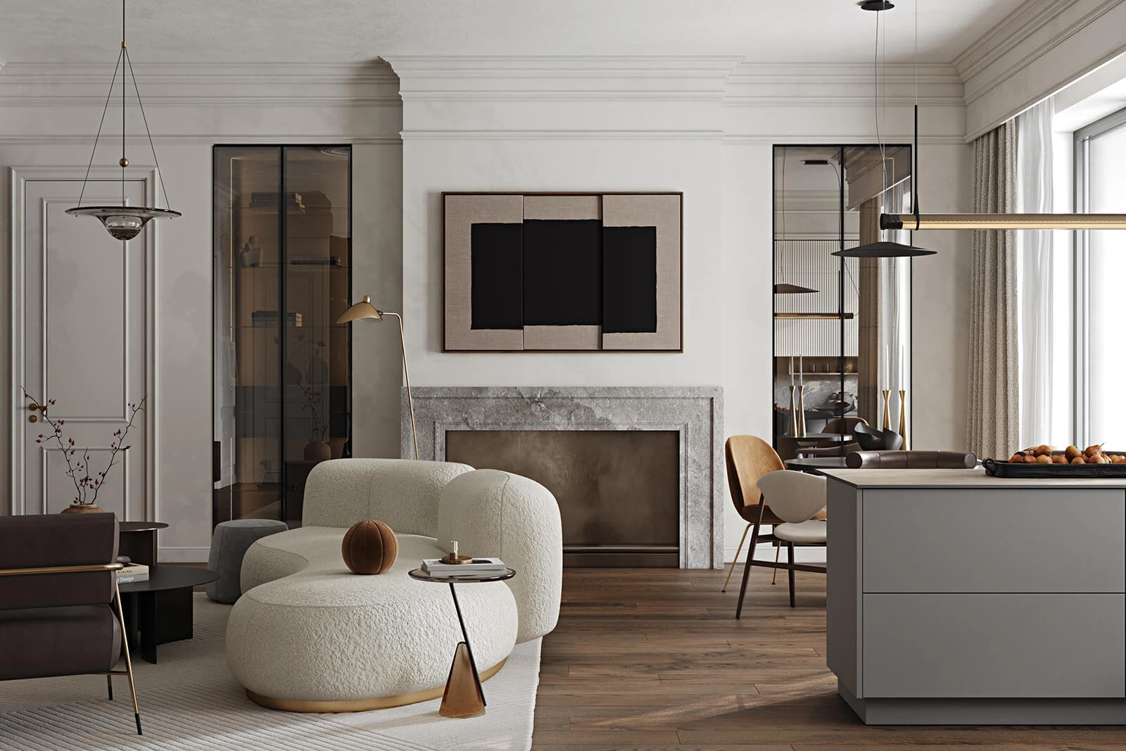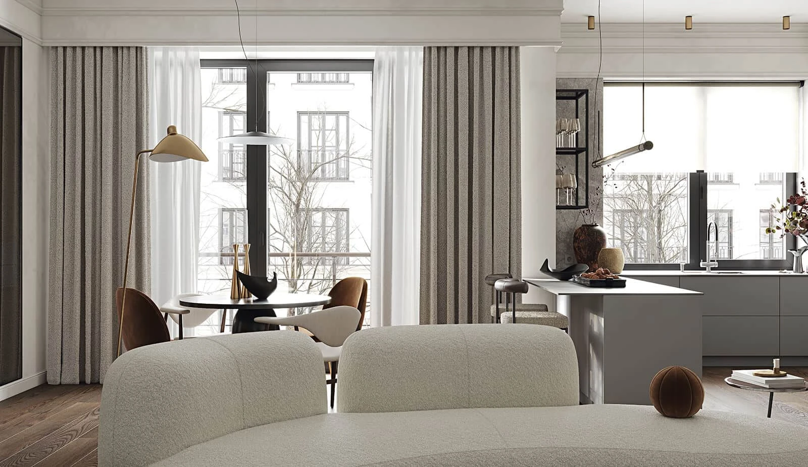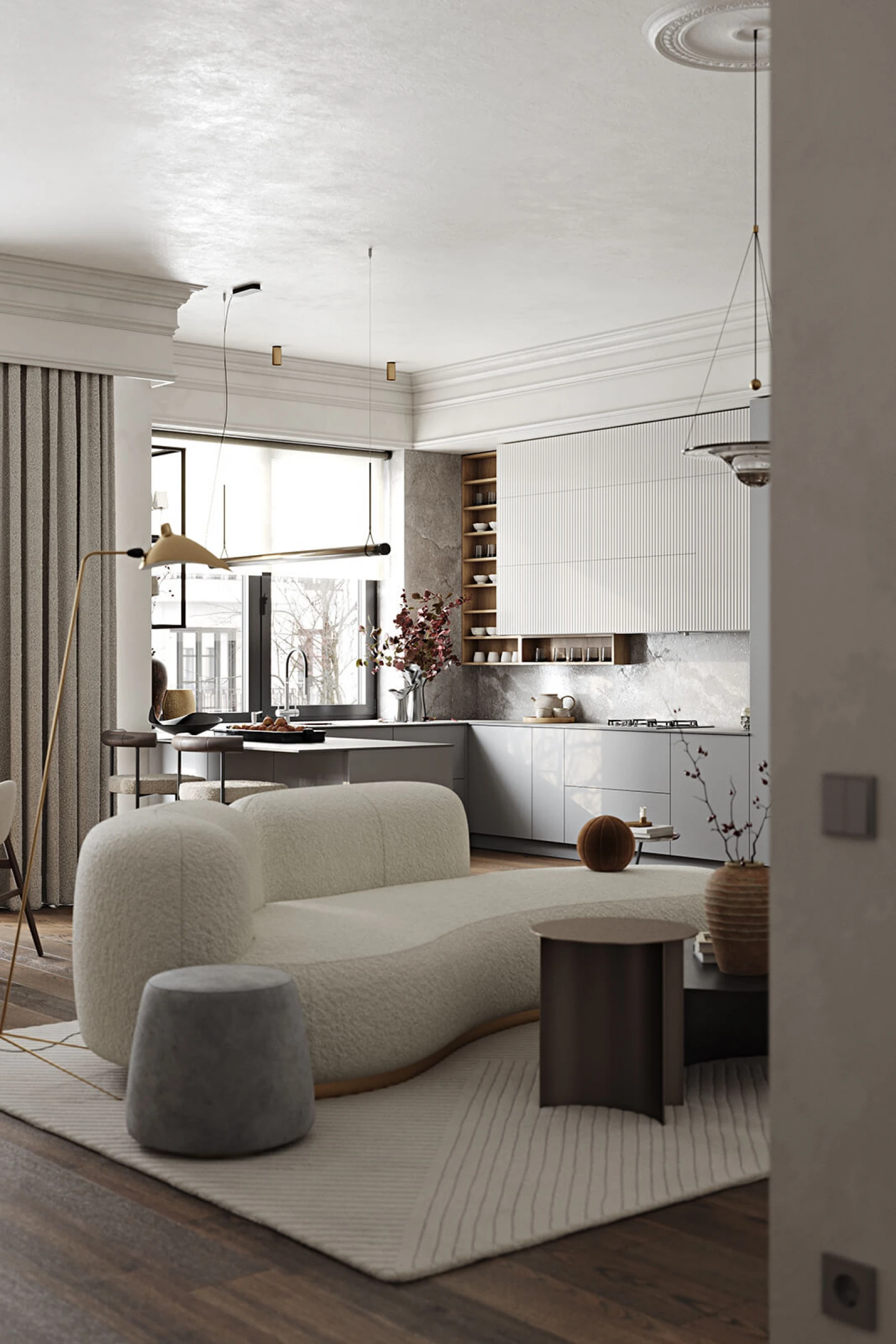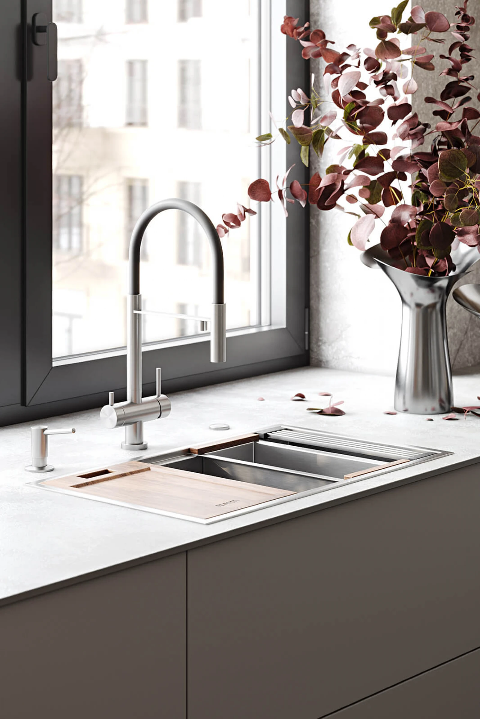 ФАСАДЫ Флавио (крашеная МДФ), цвет NCS S 0500-N Матовый / акрил FENIX NTM, цвет Серый NTM (0752) СТОЛЕШНИЦА Компакт-плита, 12 мм, декор Цинк Нирвана