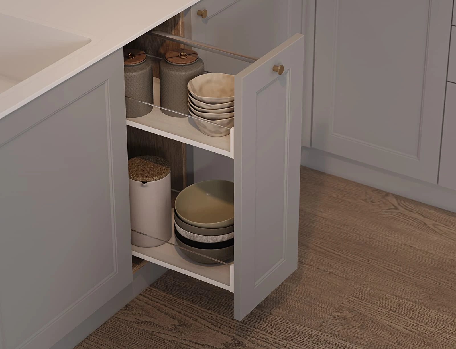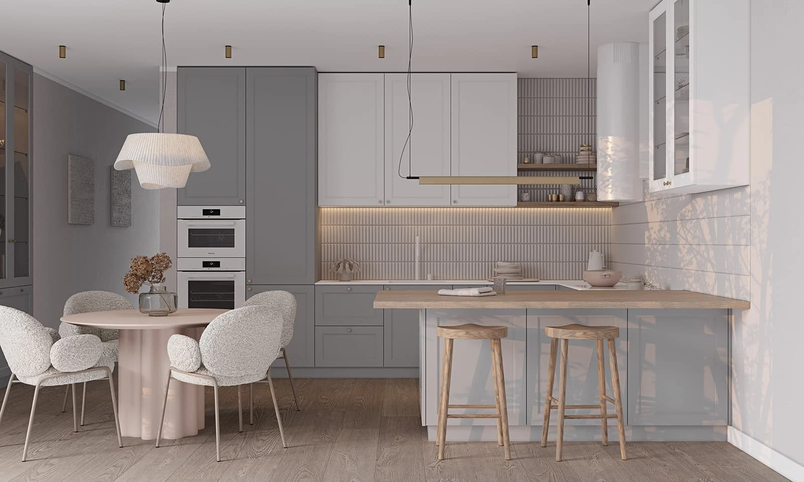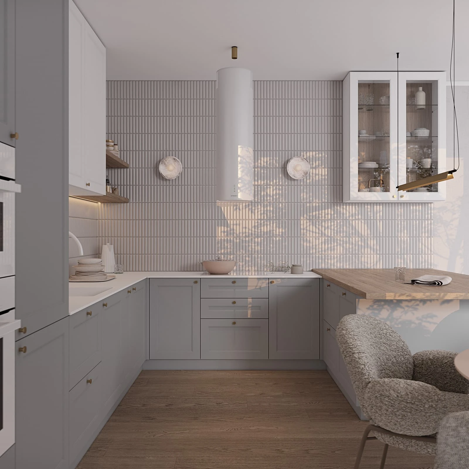 ФАСАДЫ Т647 Крашеная МДФ, цвет 161 / NCS S 3010-B СТОЛЕШНИЦА Компакт-плита, 12 мм / КС массив дуба, 38 мм, цвет #189 (воскобейц Белый)