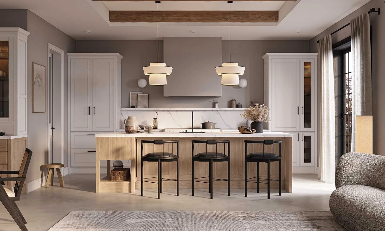 ФАСАДЫ Т737 Натуральный дуб, цвет #189 (воскобейц Белый) / 156 СТОЛЕШНИЦА Пластик HPL, 38 мм, декор Миони