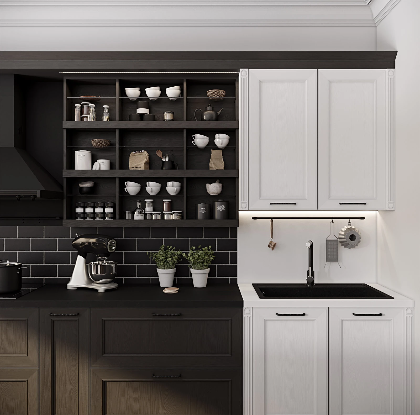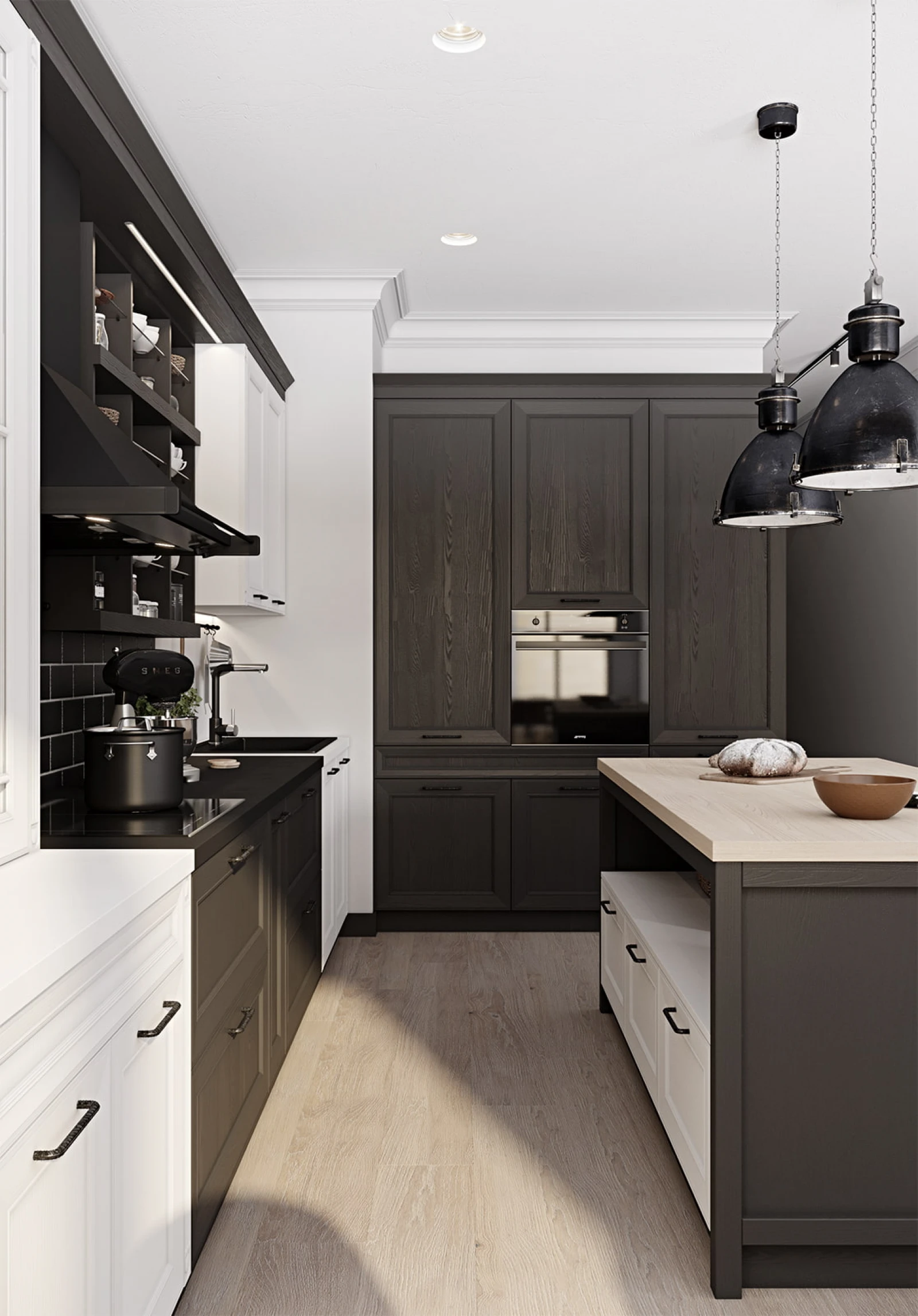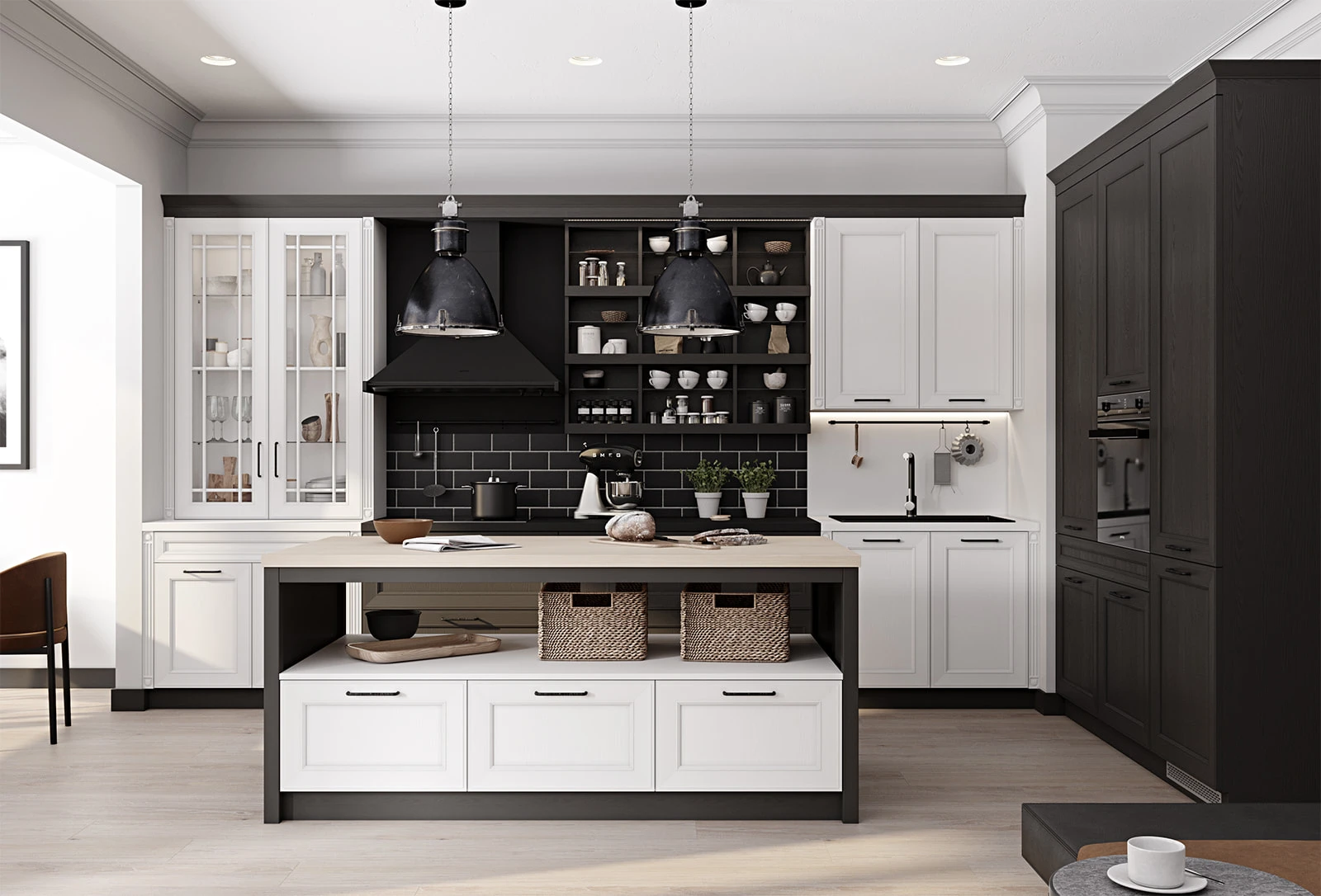 ФАСАДЫ Т720 Натуральный дуб, цвет 143 / NCS S 7500-N СТОЛЕШНИЦА Пластик HPL, 38 мм; КС с прямой кромкой, массив дуба, 38 мм, цвет #189 воскобейц Белый