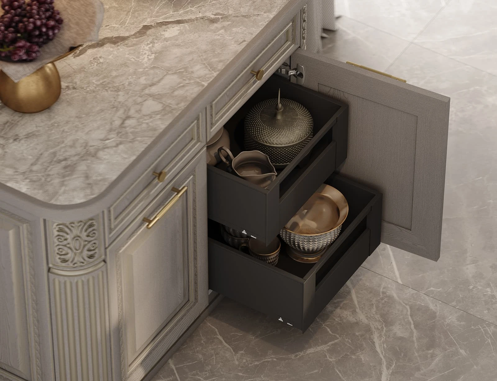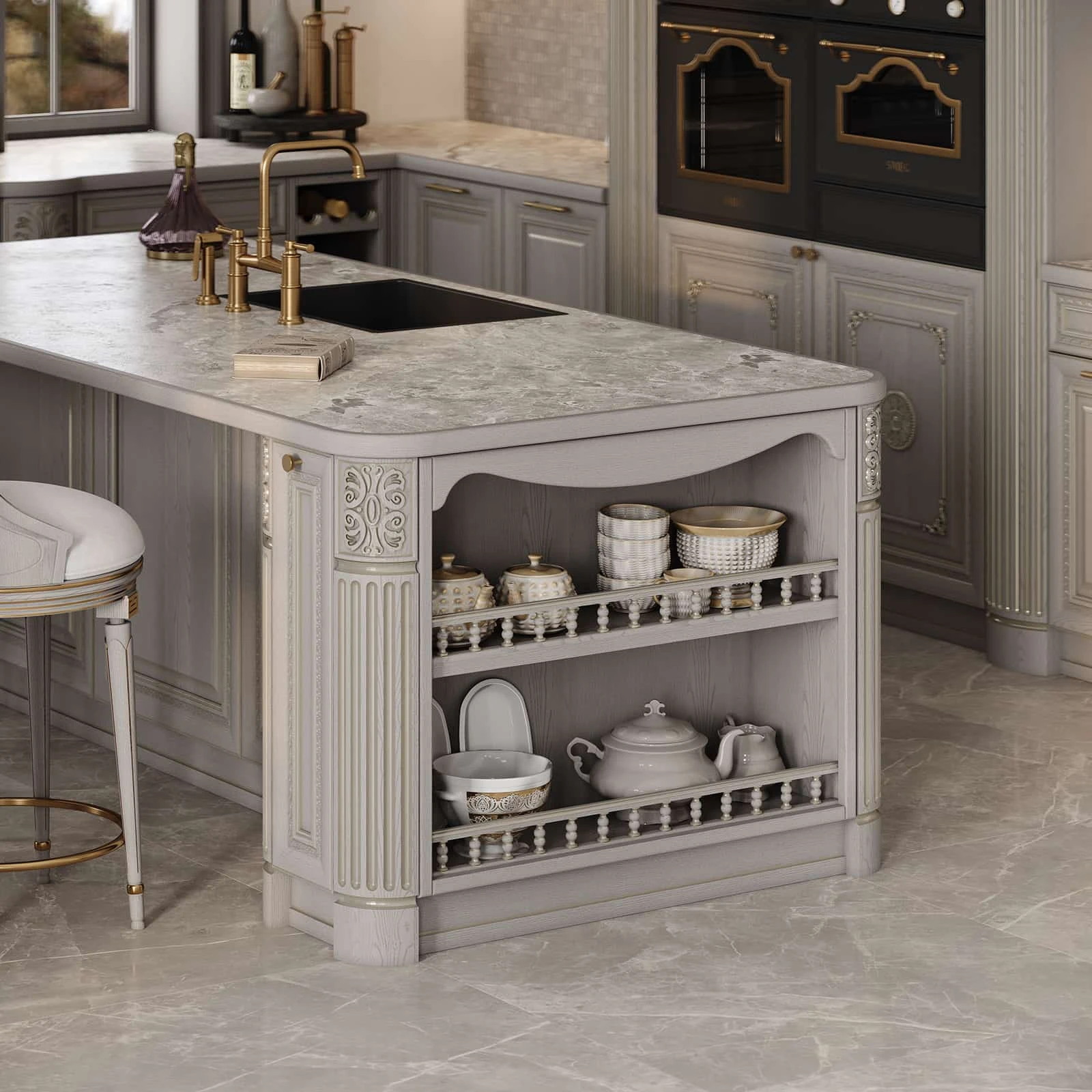ФАСАДЫ Т715К Натуральный дуб, цвет 149 (патина Шампань) СТОЛЕШНИЦА Пластик HPL, 38 мм, декор Римский Камень