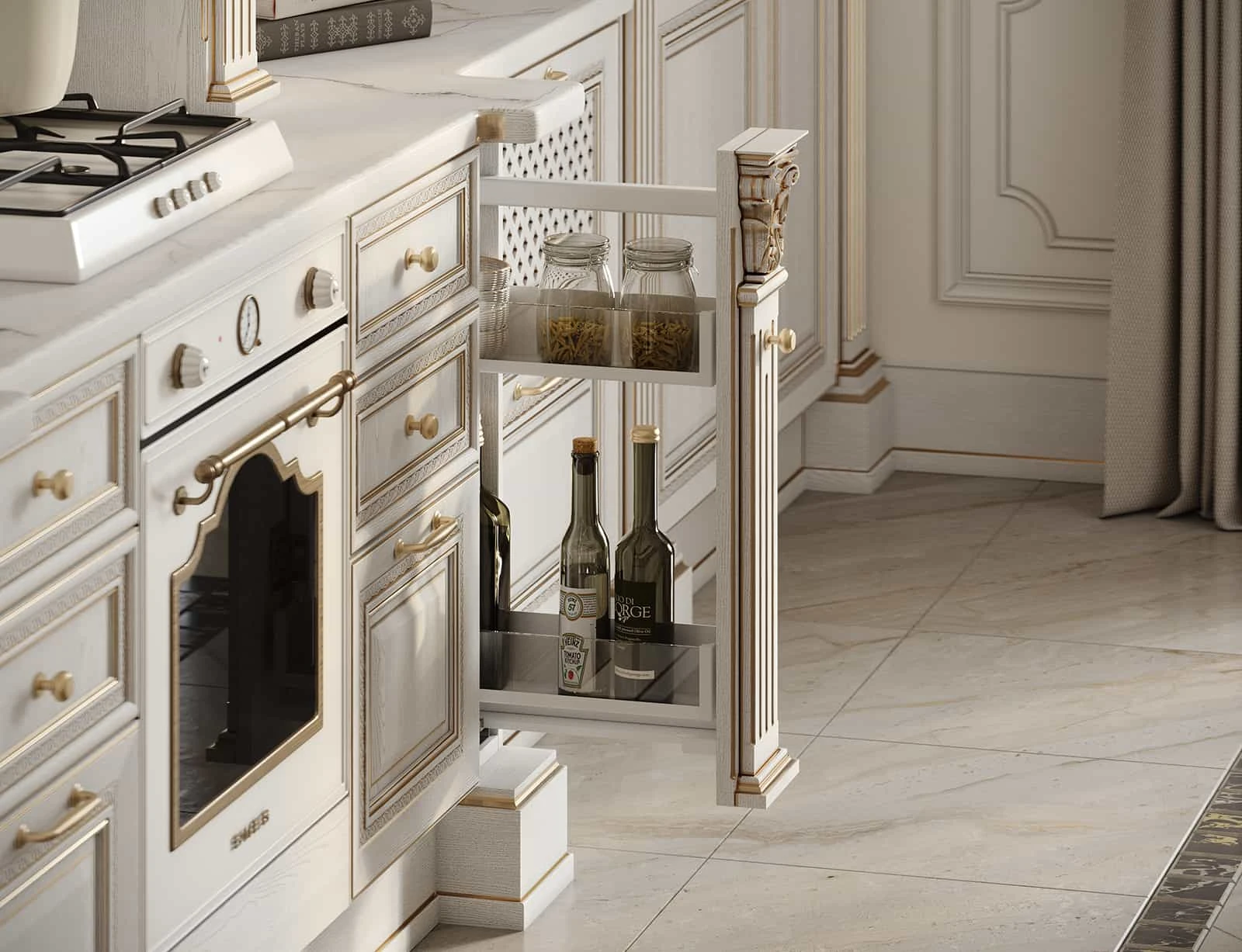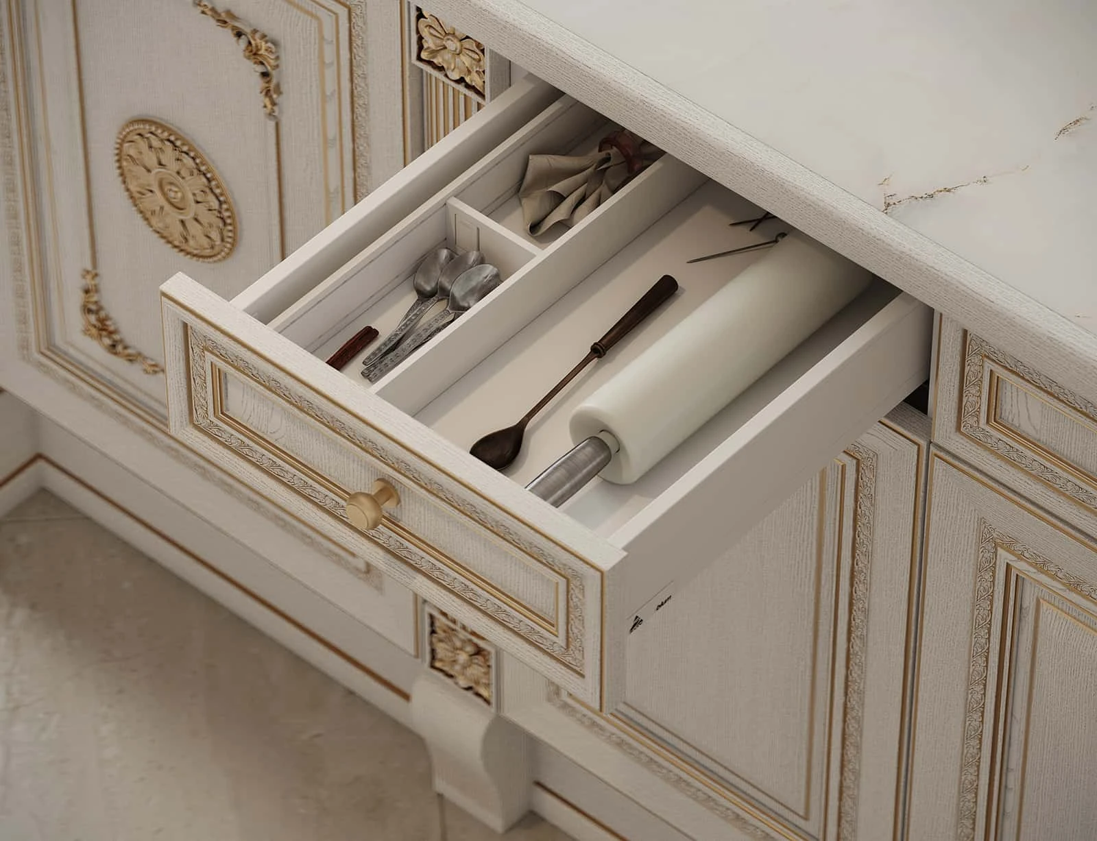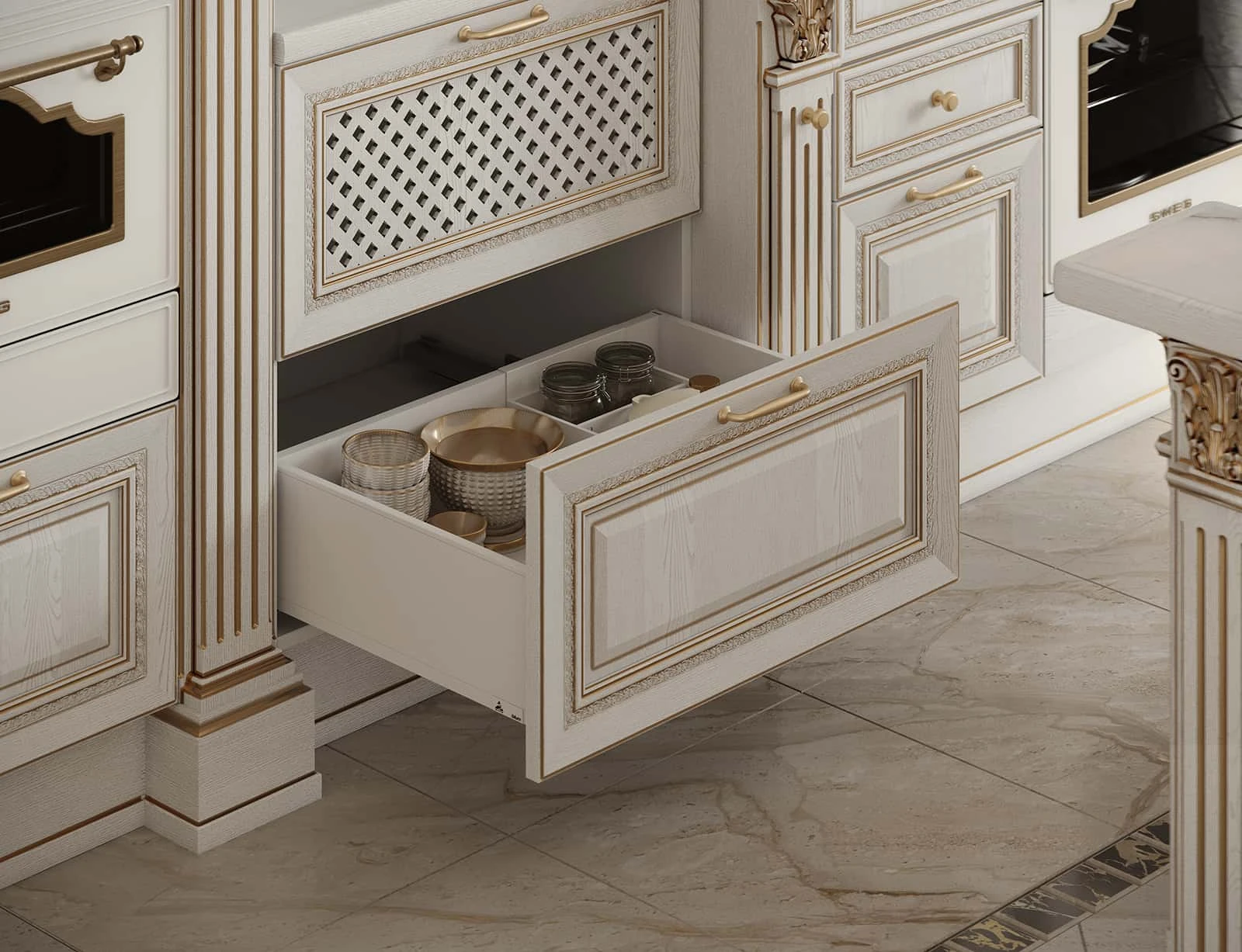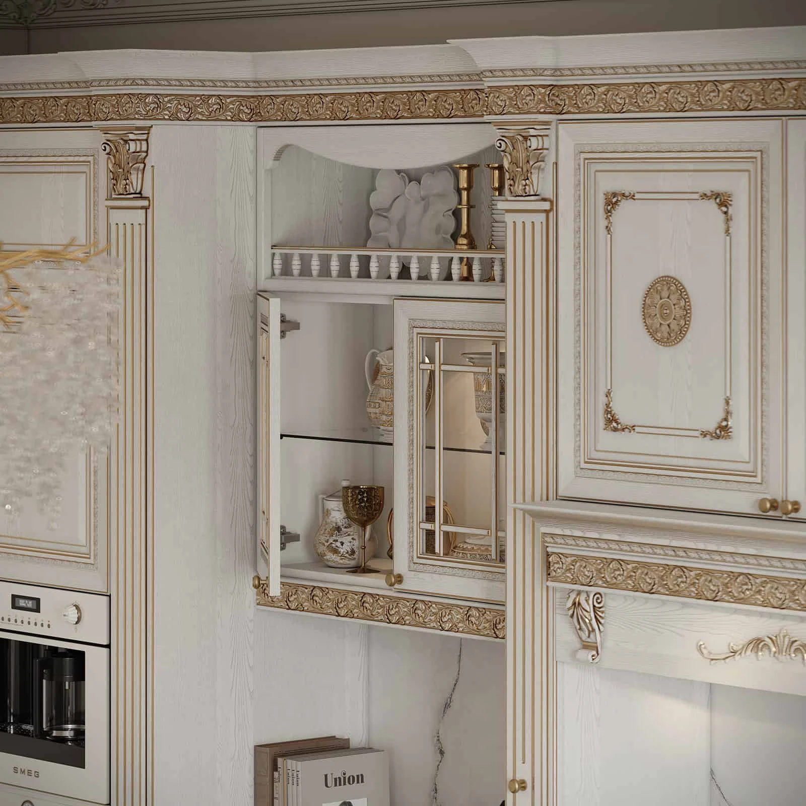ФАСАДЫ Т715К Натуральный дуб, цвет 115 (патина Золото) СТОЛЕШНИЦА Пластик HPL, 38 мм, декор Миони