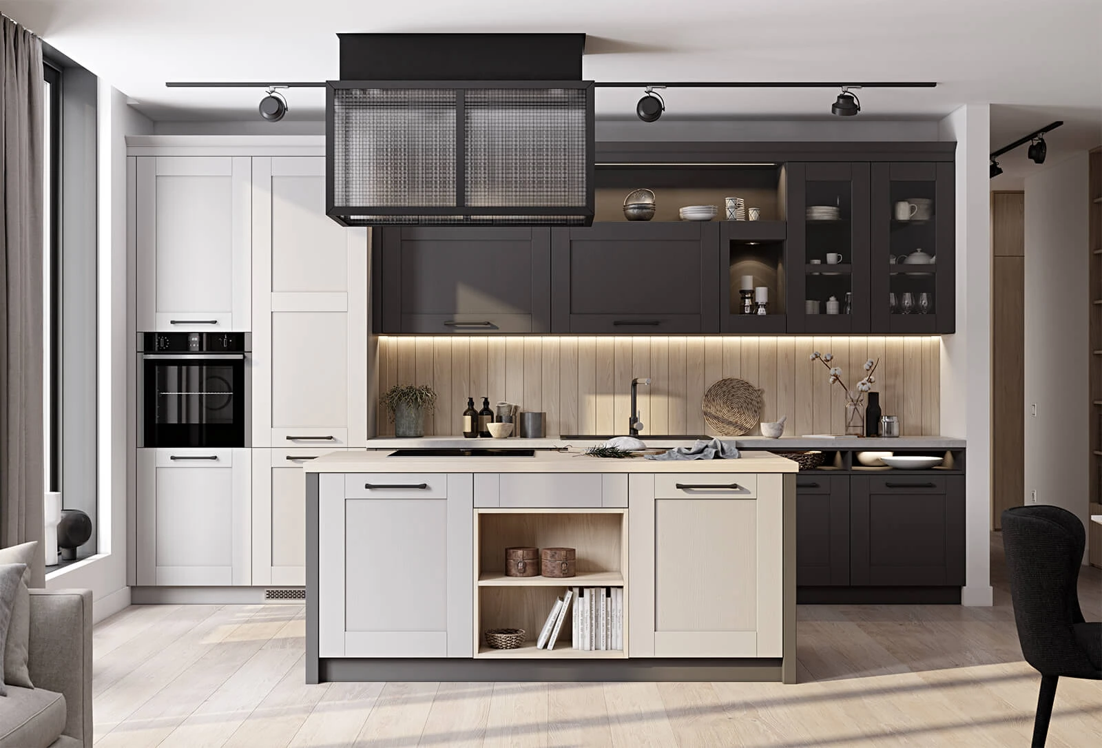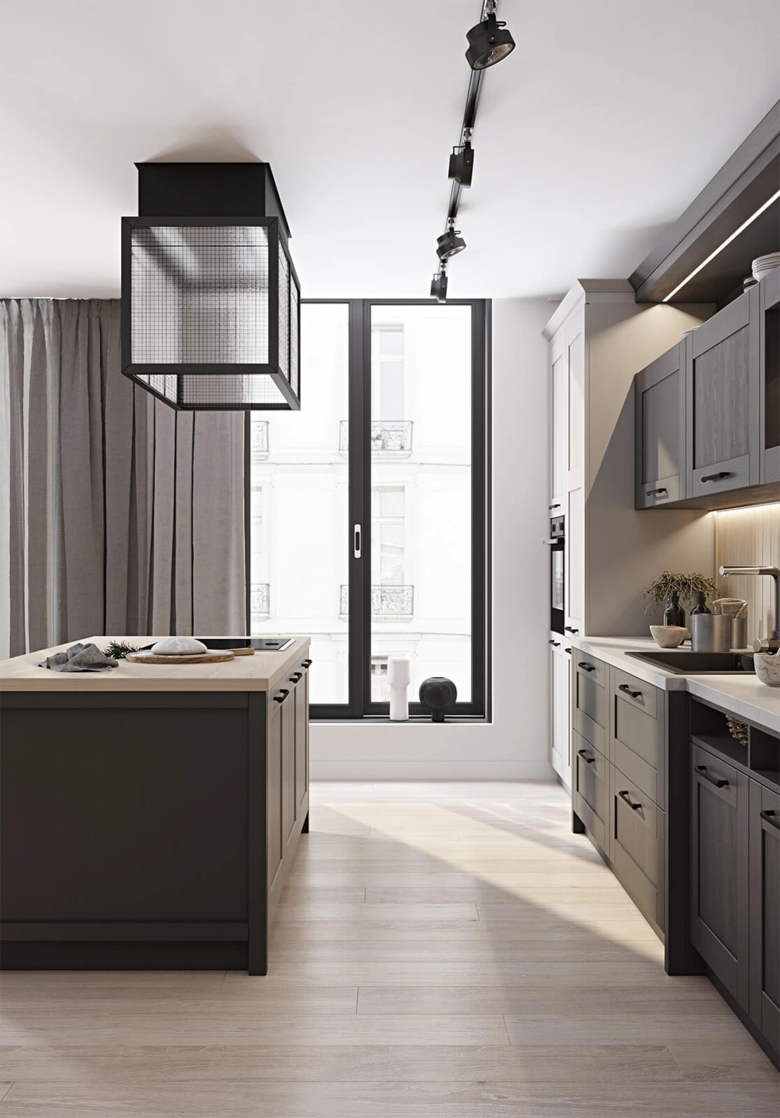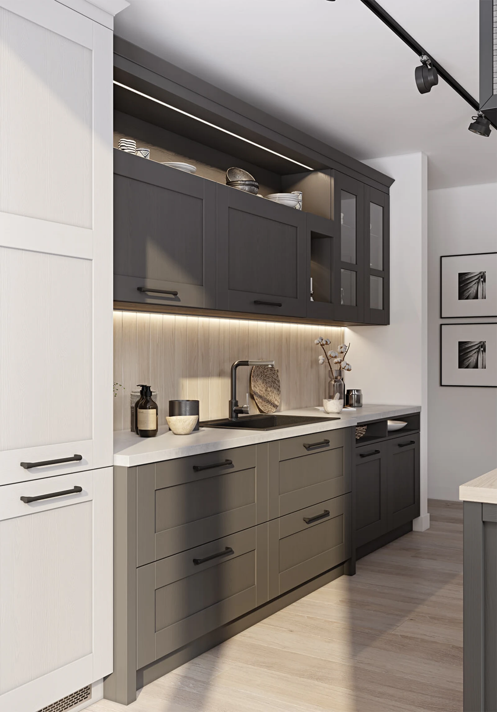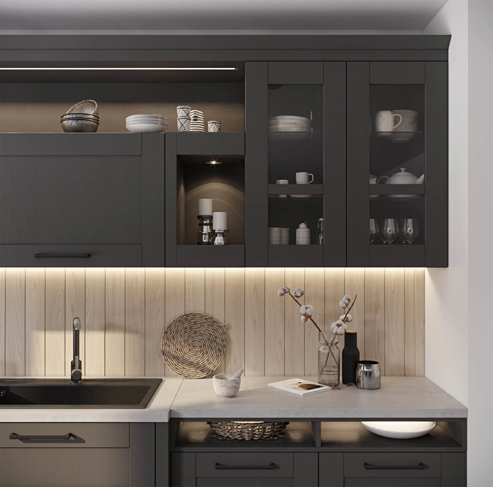 Прямой, ДСП / шпон дуба, цвет RAL 7022 / 125, высота 97 мм