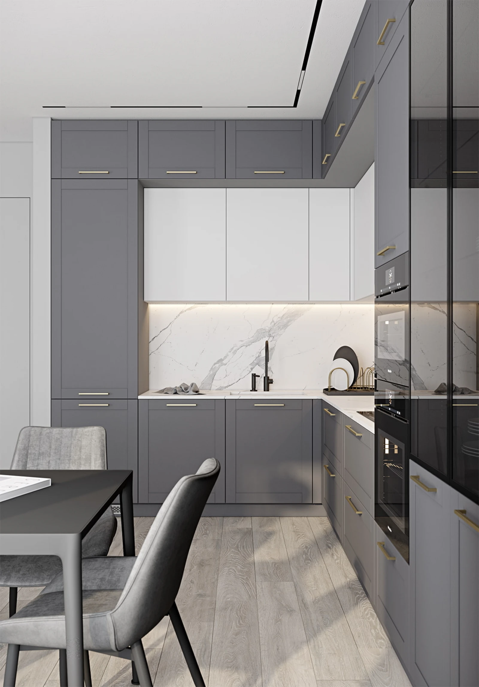 ФАСАДЫ Трент (МДФ/ПВХ), цвет NCS S 5005-R80B Матовый / NCS S 0300-N Матовый