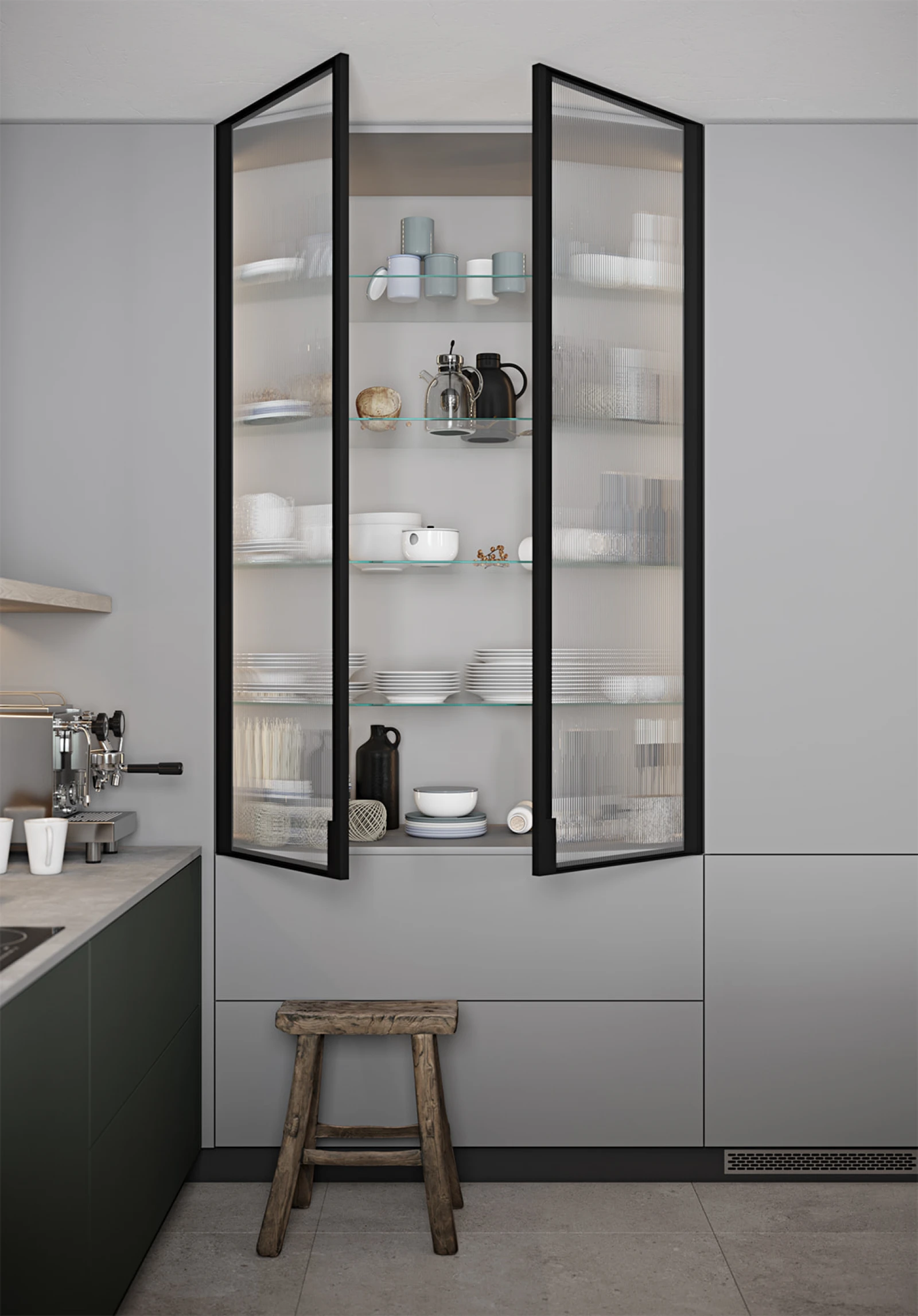 Алюминиевый профиль А-4 Черный Матовый (ручка С-6), стекло Тисненое-2