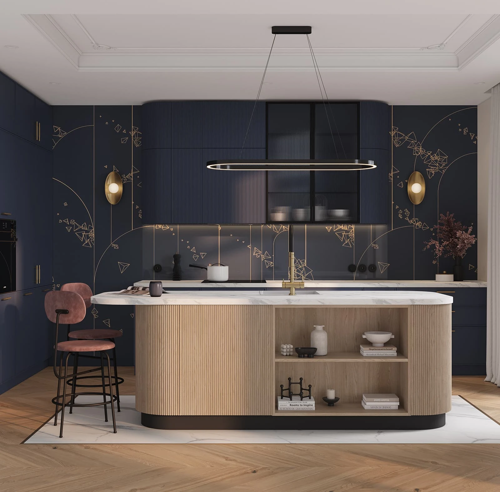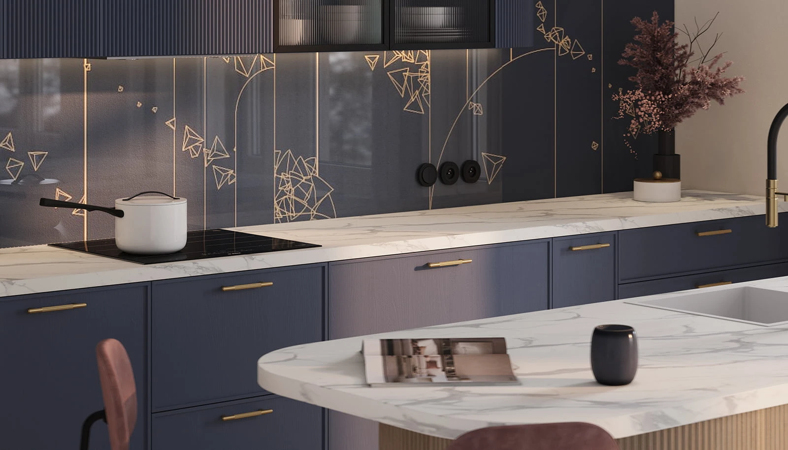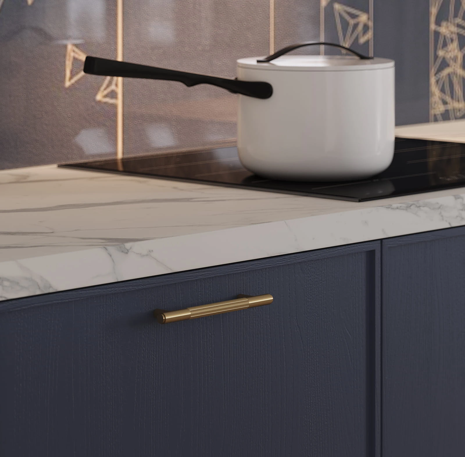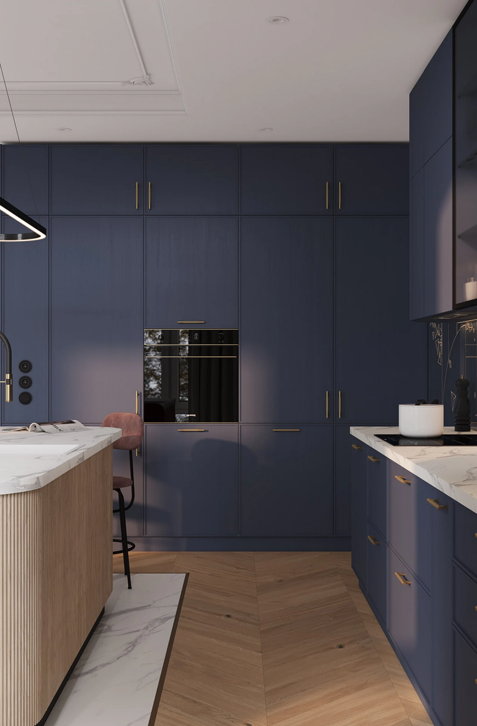 ФАСАДЫ Т432В Массив дуба / шпон дуба, цвет NCS S 6020-R90B; T430 Массив дуба / шпон дуба, цвет #189 (воскобейц Белый) СТОЛЕШНИЦА Пластик HPL, 38 мм
