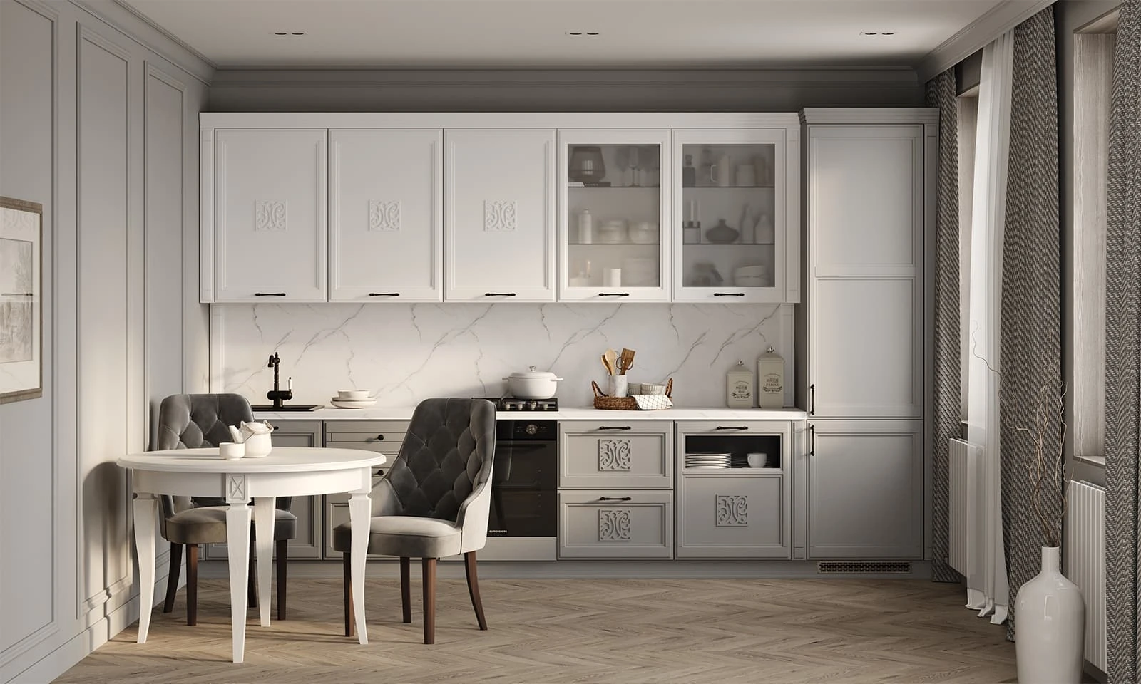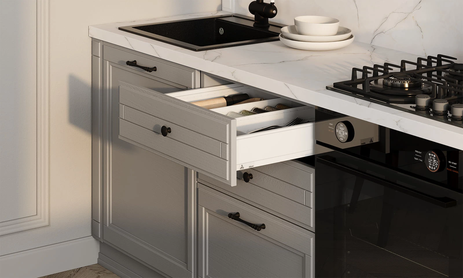 ФАСАДЫ Т762 Натуральный дуб, цвет 143 / NCS S 3502-G СТОЛЕШНИЦА Пластик HPL, 38 мм, декор Миони